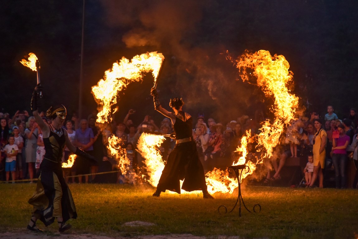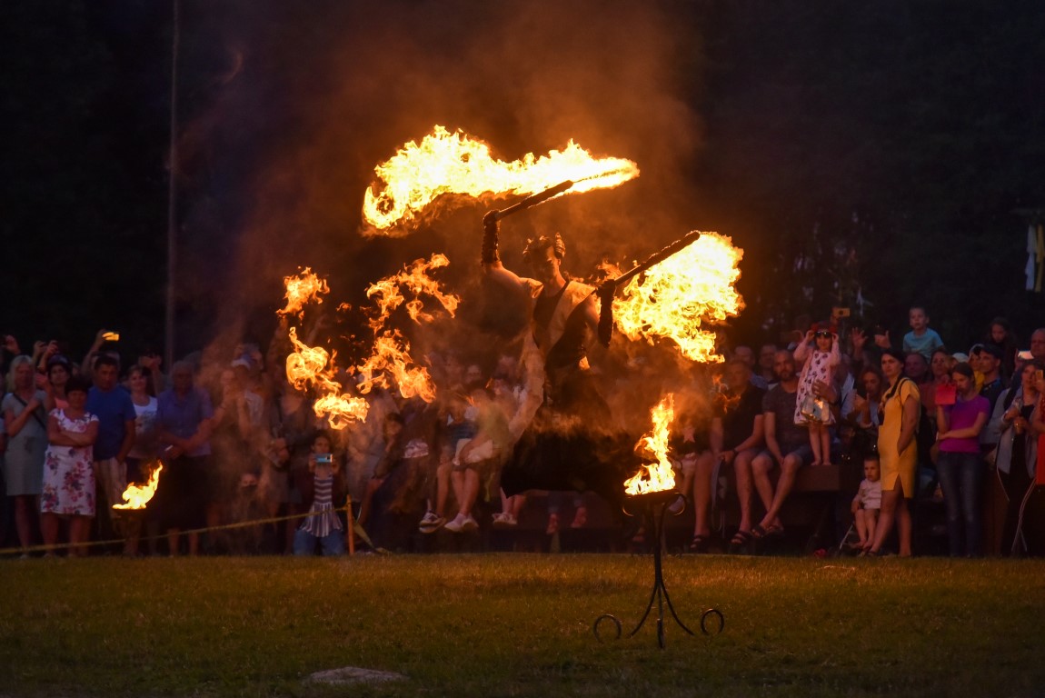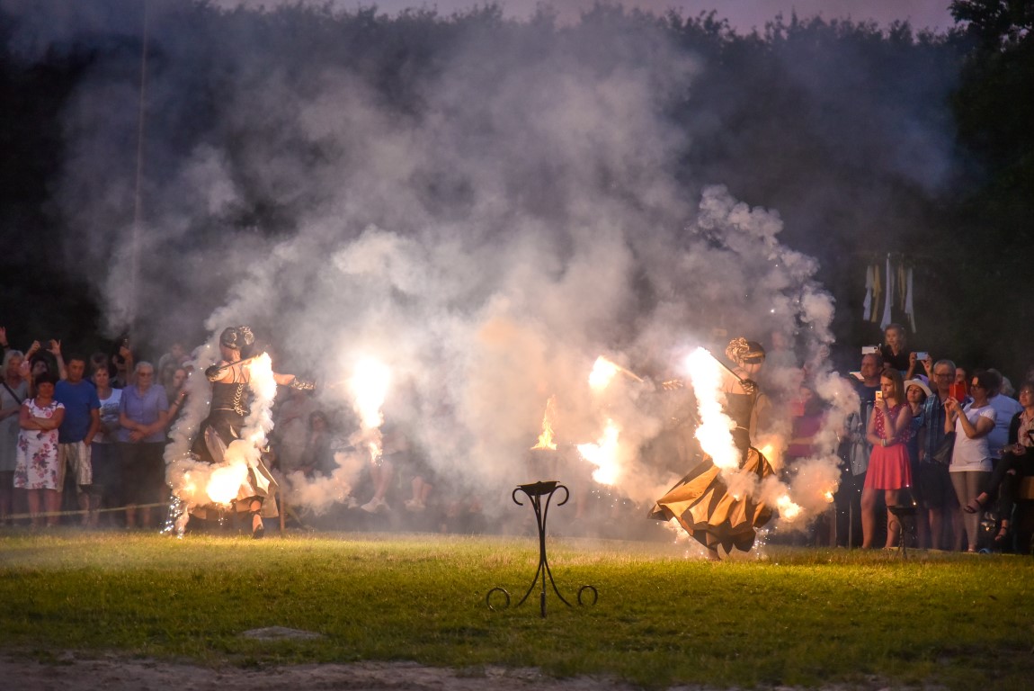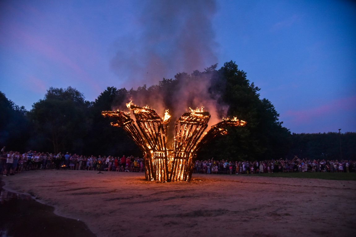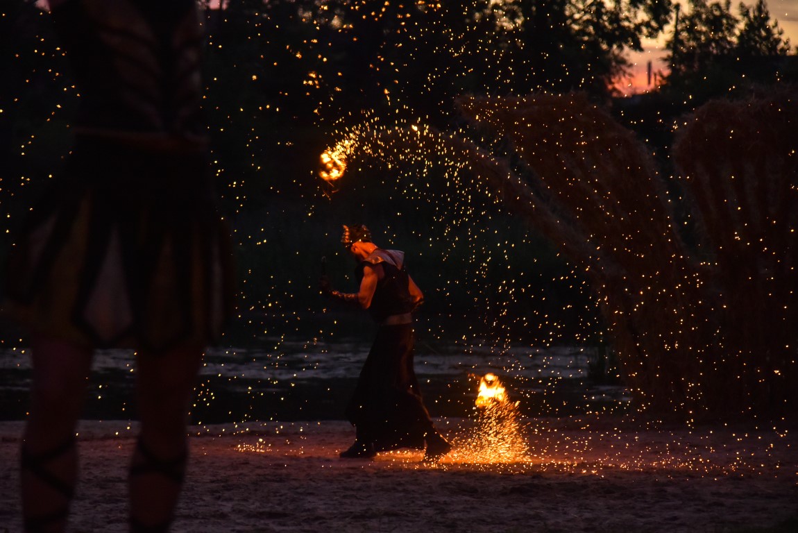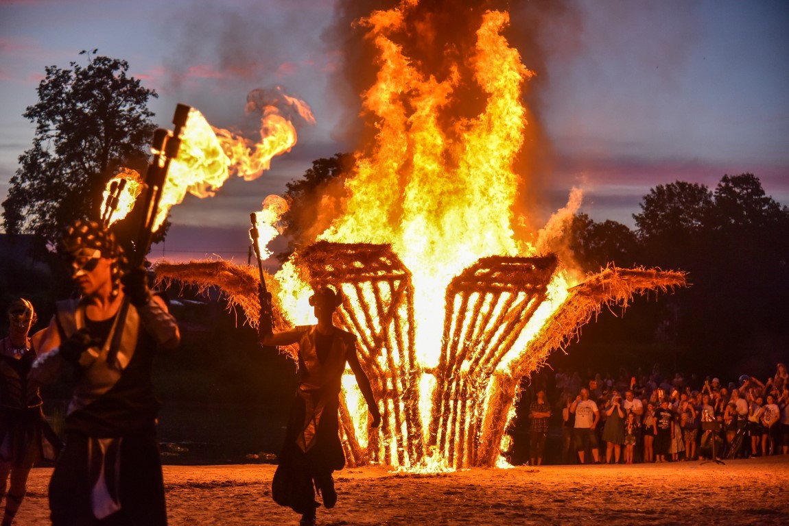 Šventinio vakaro kulminacija tapo saulės palydos su fakyrų įspūdinga ugnies programa. Unikalų šokį vainikavo uždegtas paparčio formos laužas.