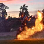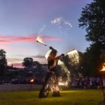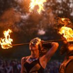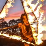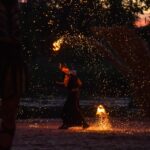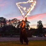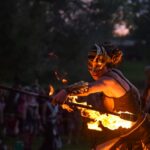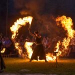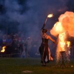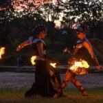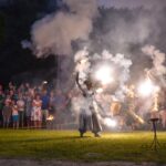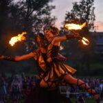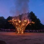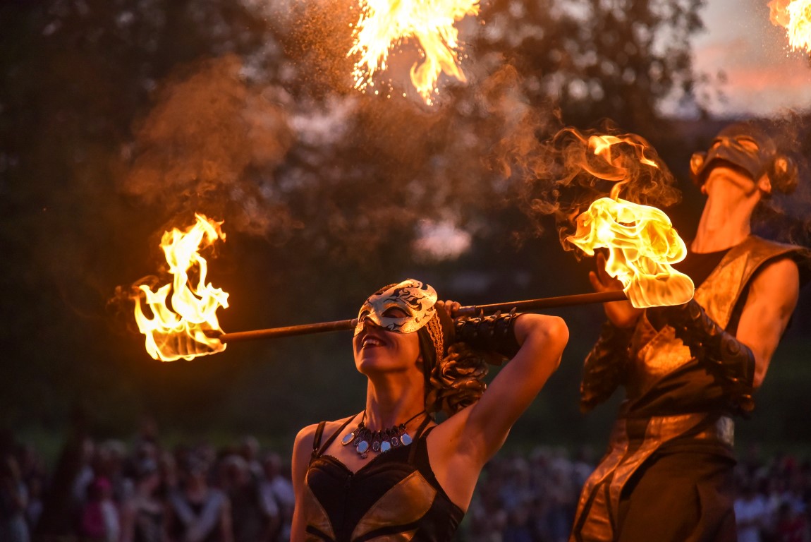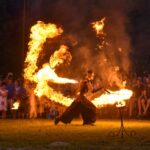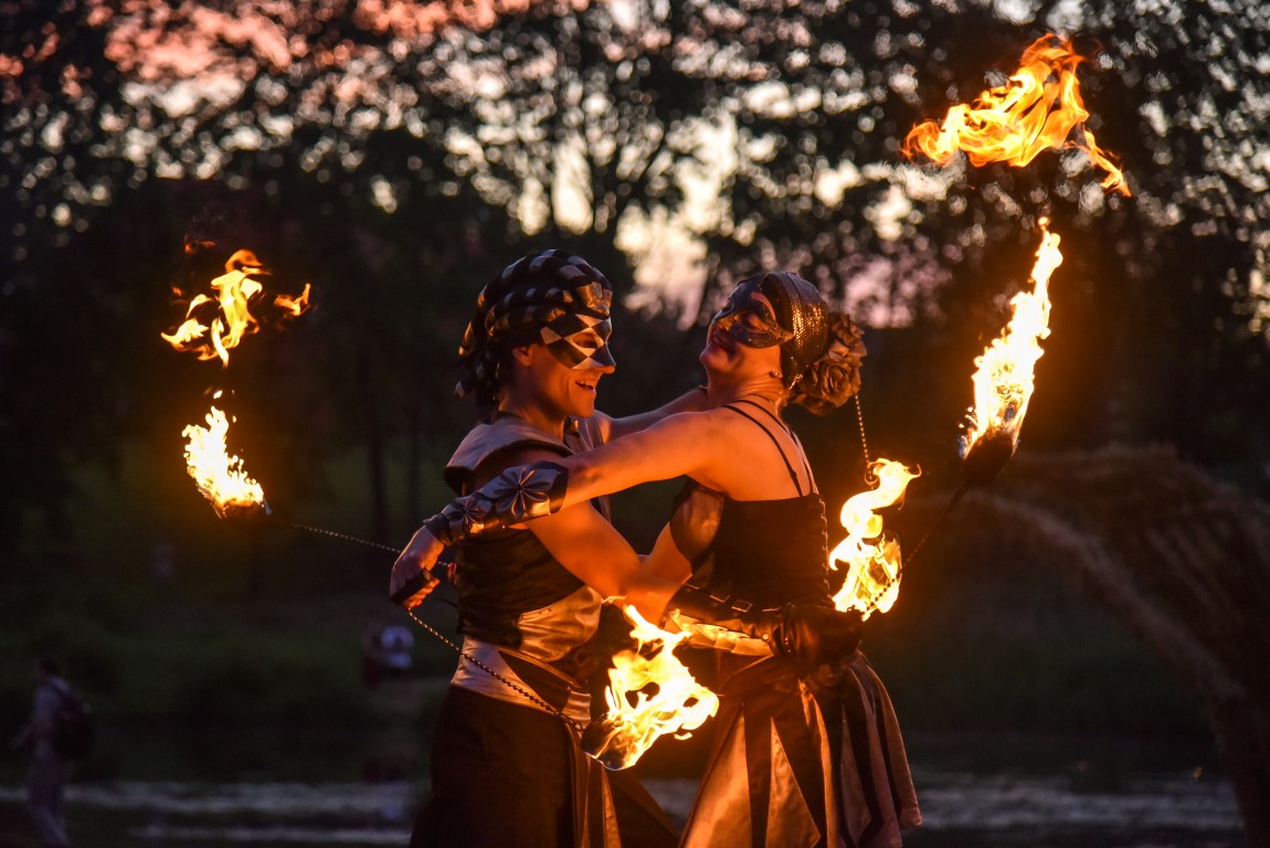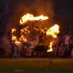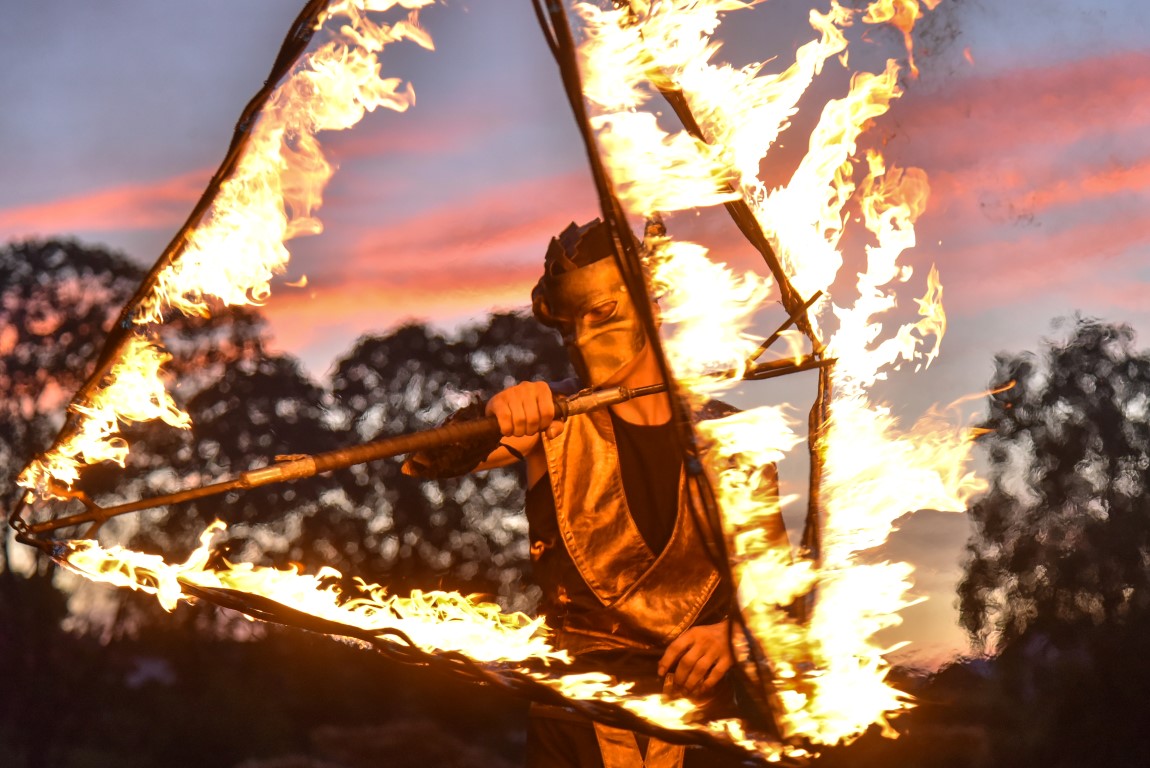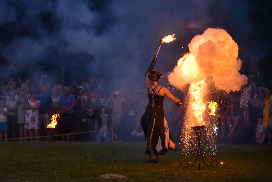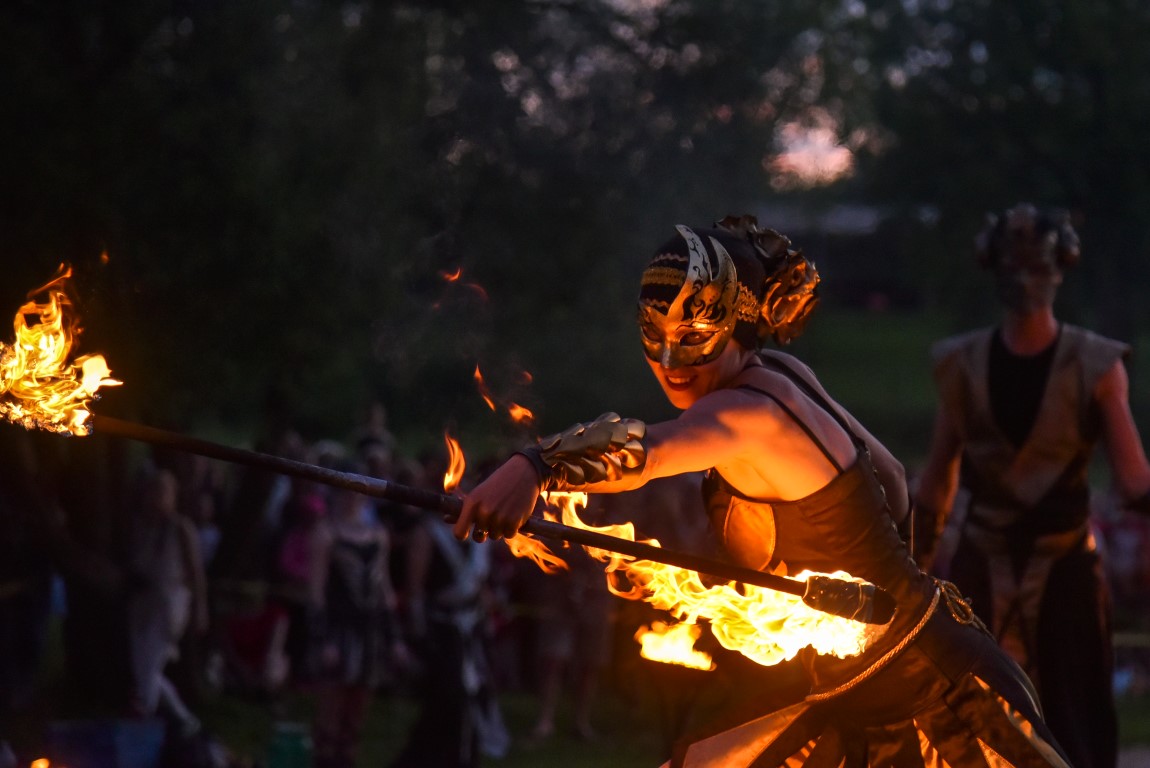 Šventinio vakaro kulminacija tapo saulės palydos su fakyrų įspūdinga ugnies programa. Unikalų šokį vainikavo uždegtas paparčio formos laužas.