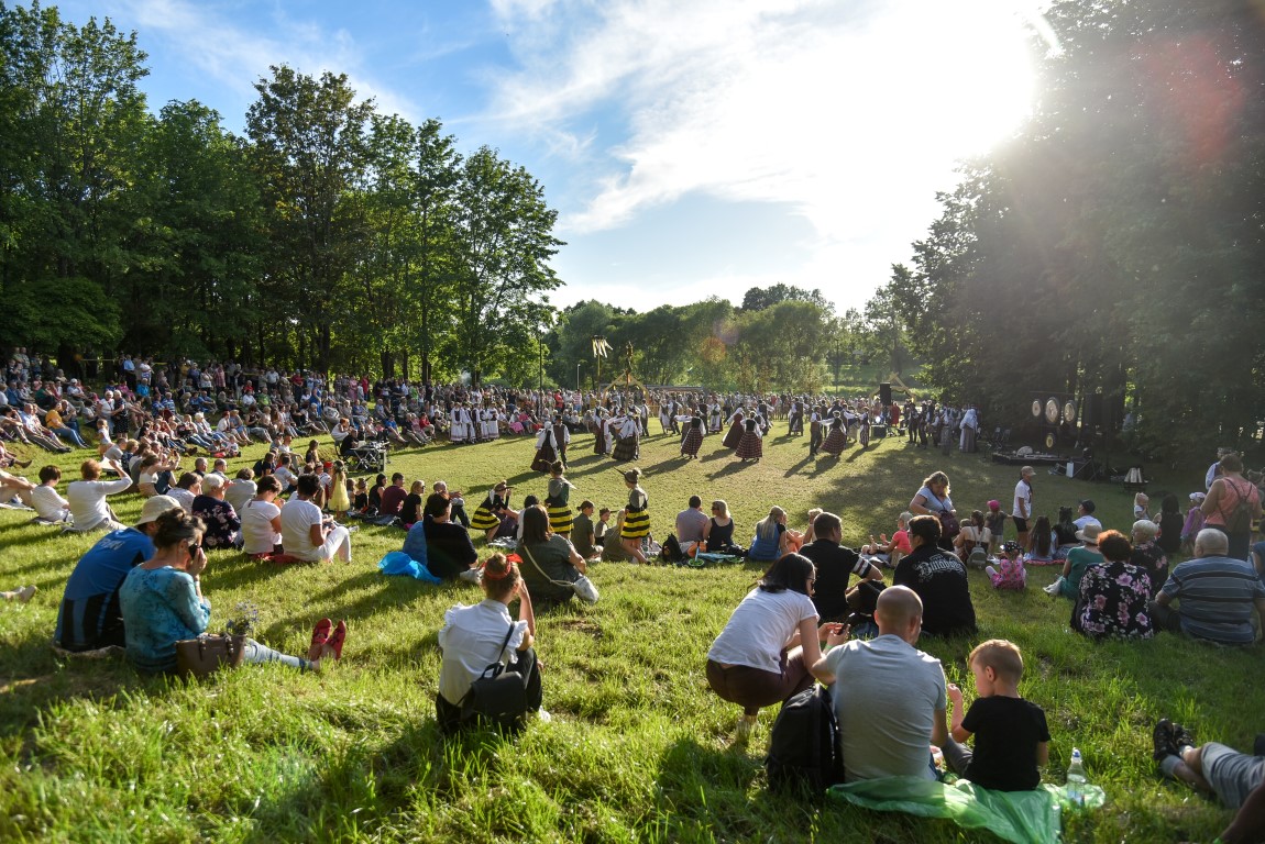 Šventės epicentras įsikūrė parko amfiteatro teritorijoje. Dėl saugumo antradienio vakarą ji buvo aptverta ir į ją įleidžiamų svečių skaičius ribotas. Šioje zonoje žiūrovus linksmino liaudiškos muzikos kolektyvai, šokėjai.