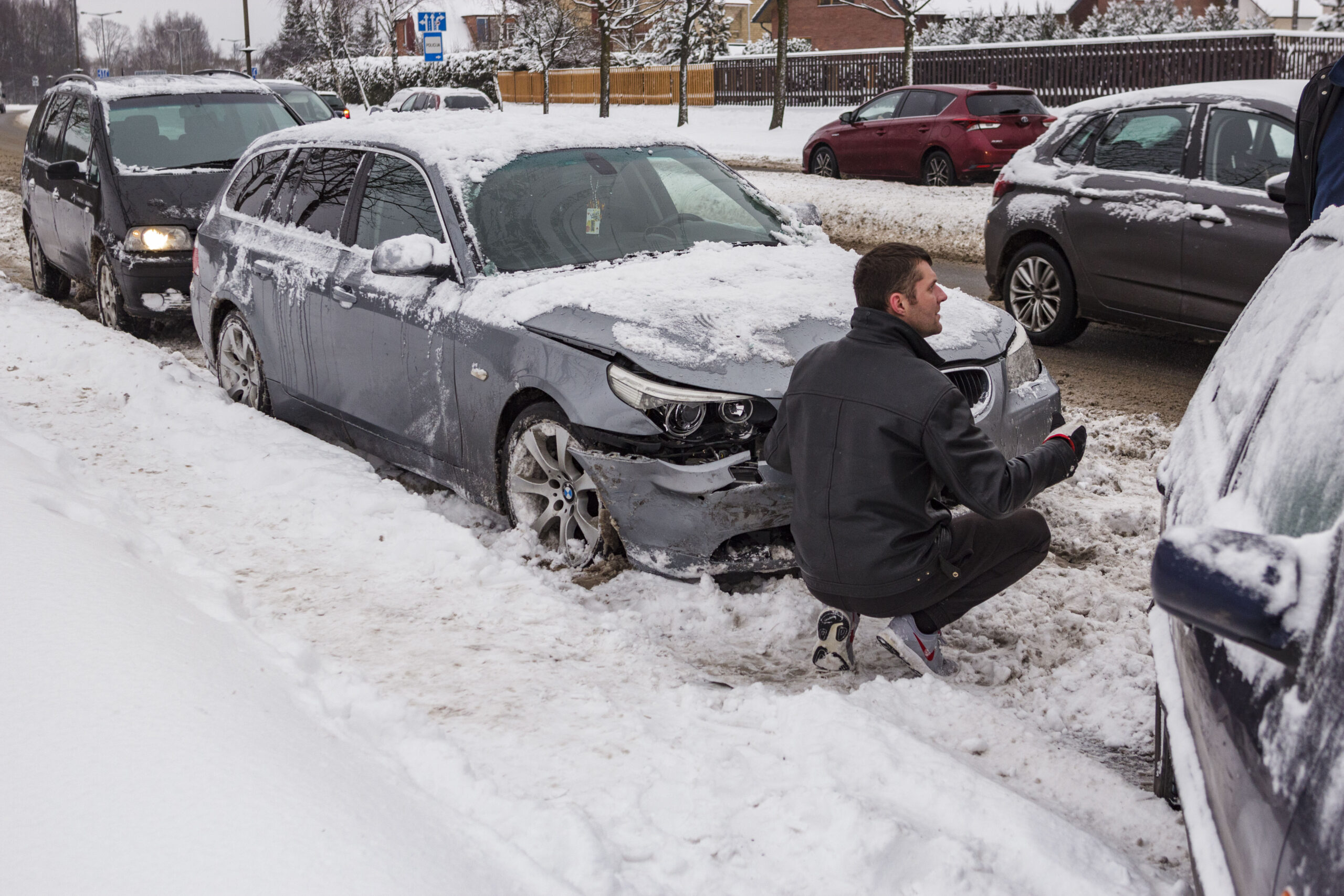 Sniego kalnai ir slidžios gatvės Panevėžyje tapo masinės avarijos priežastimi. Laimei, susidūrus keturiems automobiliams žmonės nenukentėjo.