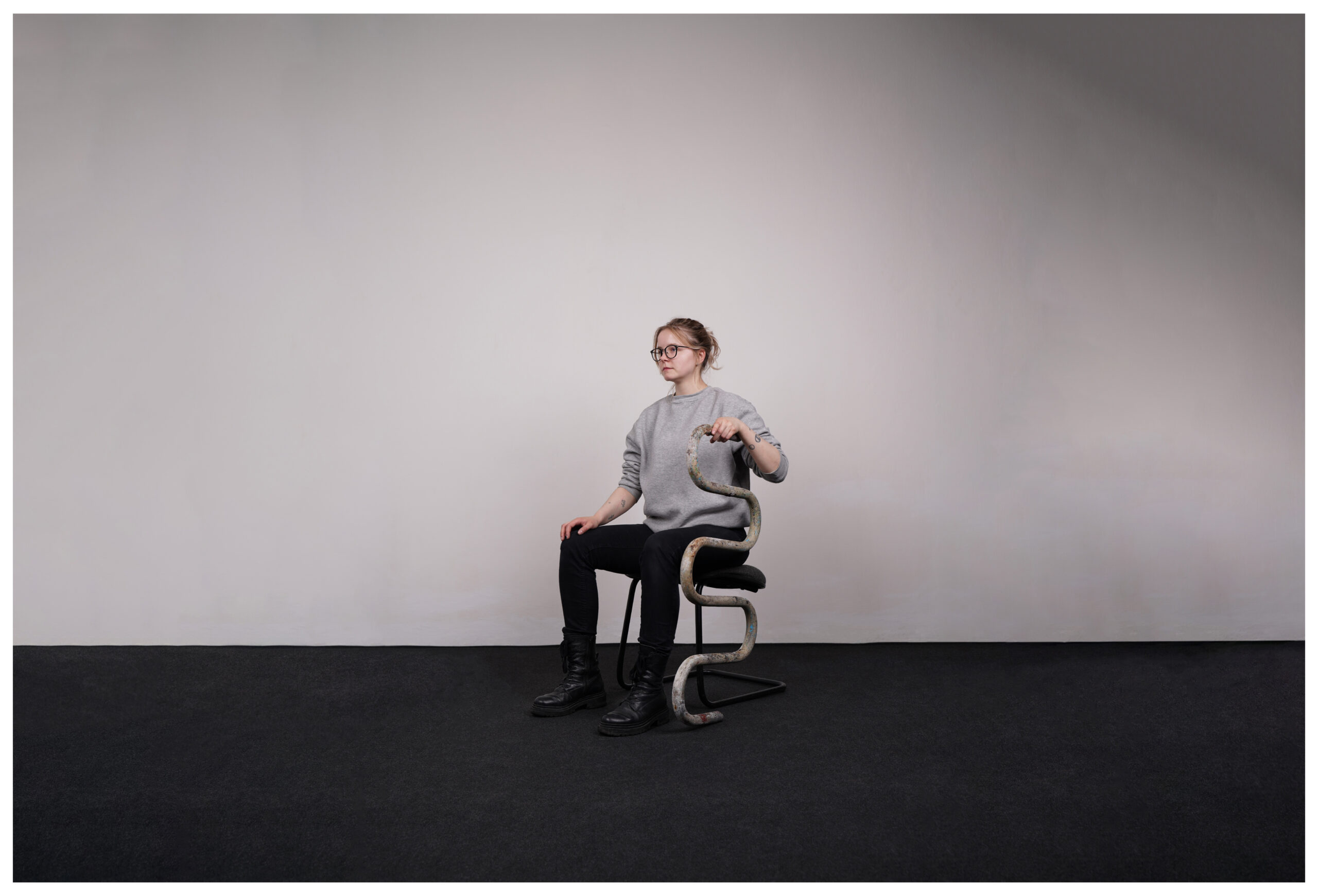 Vienuma ir susikaupimas – S. Nakrošiūtei būtinos sąlygos kurti: dirbtuvėse dirbant su įvairiais aštriais įrankiais įmanoma nemenkai susižeisti.