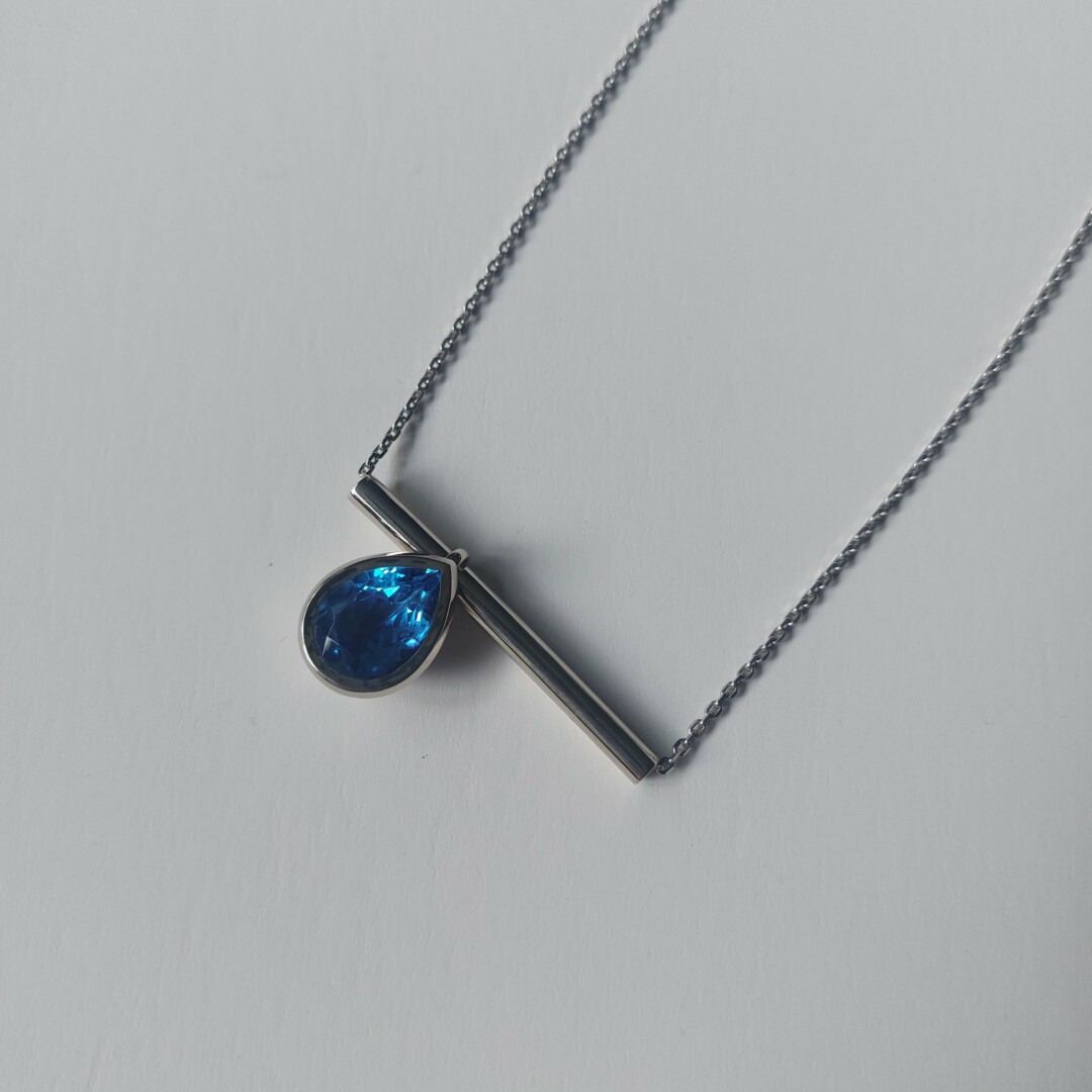 „Kartą gaminau išsiardantį kaklo papuošalą, prie jo buvo ir išsiardantį auskarai. Metale buvo įstatyti du žydri didelio lašo formos topazai“, – apie brangiausių medžiagų panaudojimą pasakoja juvelyrė.