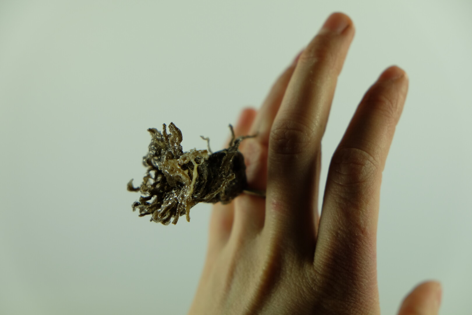 Menininkei ypač įdomūs atsitiktiniai radiniai – objektai, kurie savo forma ar tekstūra traukia akį. Šiuos radinius ji įkomponuoja į juvelyrikos dirbinius, taip suteikdama kūriniams autentiškumo.