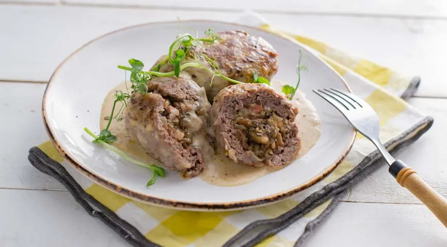 Reikės (5 procijoms): suktinukams: 1 kg faršo (700 g jautienos, 300 g kiaulienos), 2 kiaušinių, 4–7 džiovintų grybų, 1 svogūno, 1 šaukšto sviesto, 120 g gabalėlio lašinukų arba kumpio, 1 šaukšto grūstų kvietinės duonos džiūvėsių, 1–2 šaukštų grybų nuoviro, miltų – pabarstyti; padažui: 20 g sviesto, 1 šaukšto miltų, 2–2,5 stiklinės grybų sultinio, 2–3 šaukštų kaimiškos grietinės, druskos, cukraus, acto.