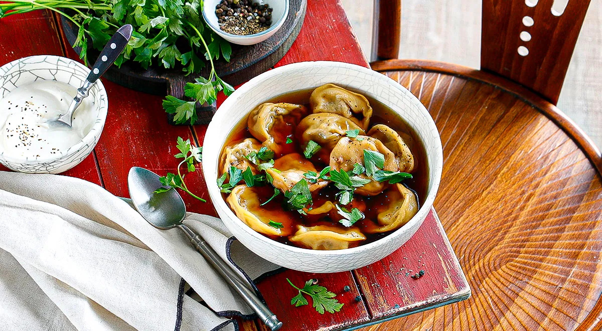 Reikės (8 porcijoms): įdarui: 250 g lašinių su raumenuku, 60 g džiovintų baravykų, 1 svogūno, druskos; tešlai: 500 g miltų, 2 kiaušinių, 2 šaukštų aliejaus, 1 šaukštelio druskos; patiekti: grietinės (20 %), petražolių.