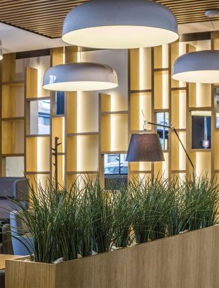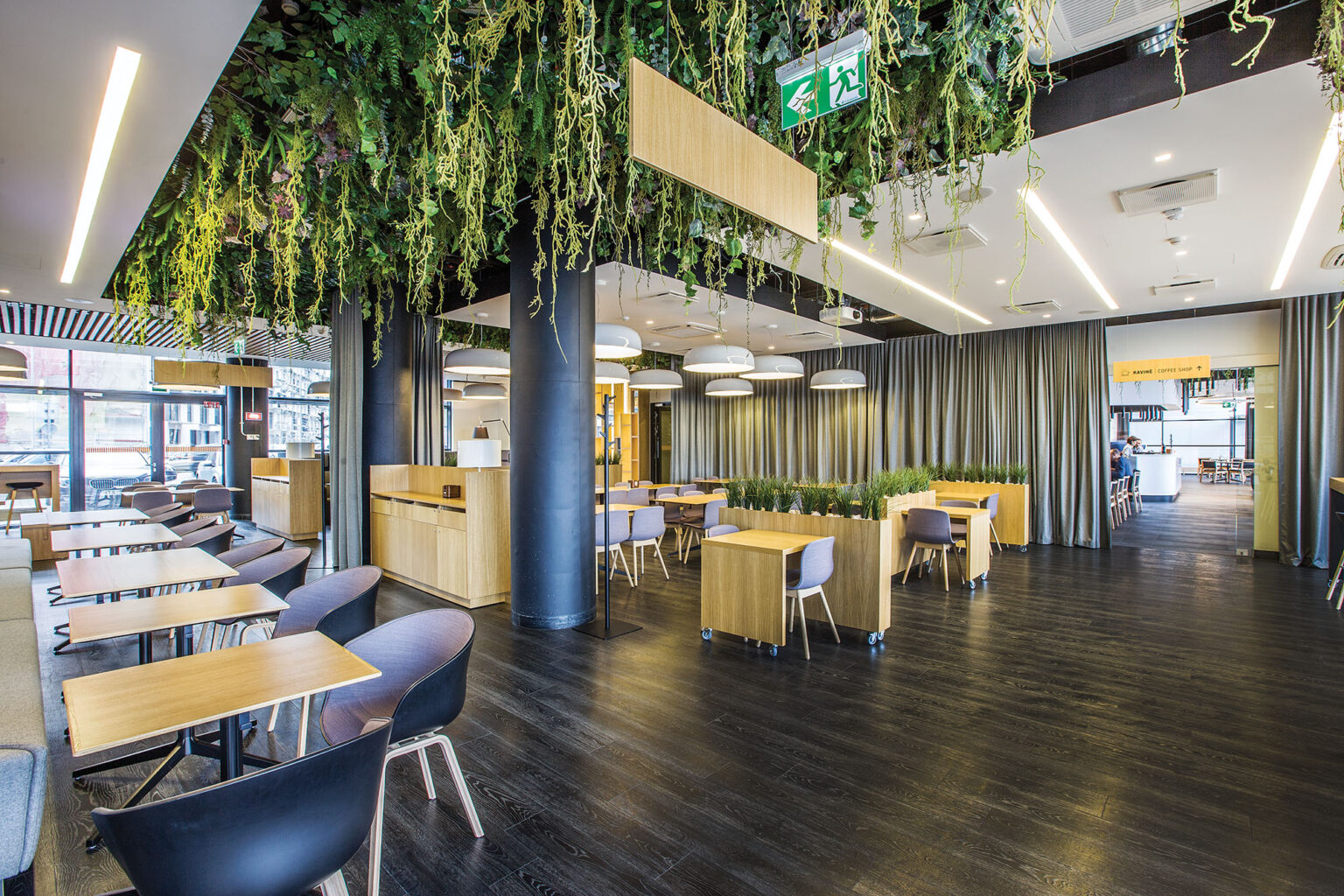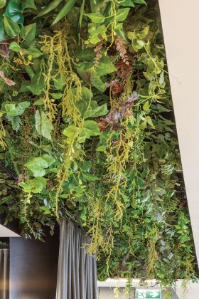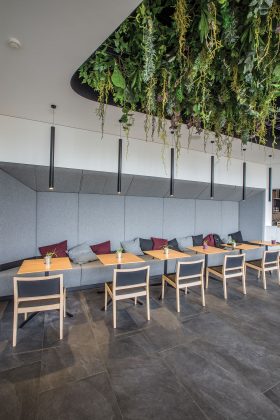 „Technopolio“ biuruose projektuotojams reikėjo laikytis nustatyto standarto, tačiau restorane architektai turėjo daugiau kūrybinės laisvės. „Įdomu, kad interjero idėja imta įgyvendinti ne nuo sienų ar numanomų zonų, o nuo lubų ir kabinamų augalų. Šios idėjos niekada anksčiau nebuvome išmėginę“, – pasakoja T. Jasiulis, dėl paprastesnių inžinerinių sprendimų pasirinkęs dirbtinės žalumos variantą. Visgi ir netikri augalai suteikia erdvei gaivumo bei jaukumo. Architekto teigimu, to ir siekta: daug dirbantiems žmonėms norisi ir netgi būtina dalį dienos praleisti ramesnėje erdvėje be streso ir iššūkių.