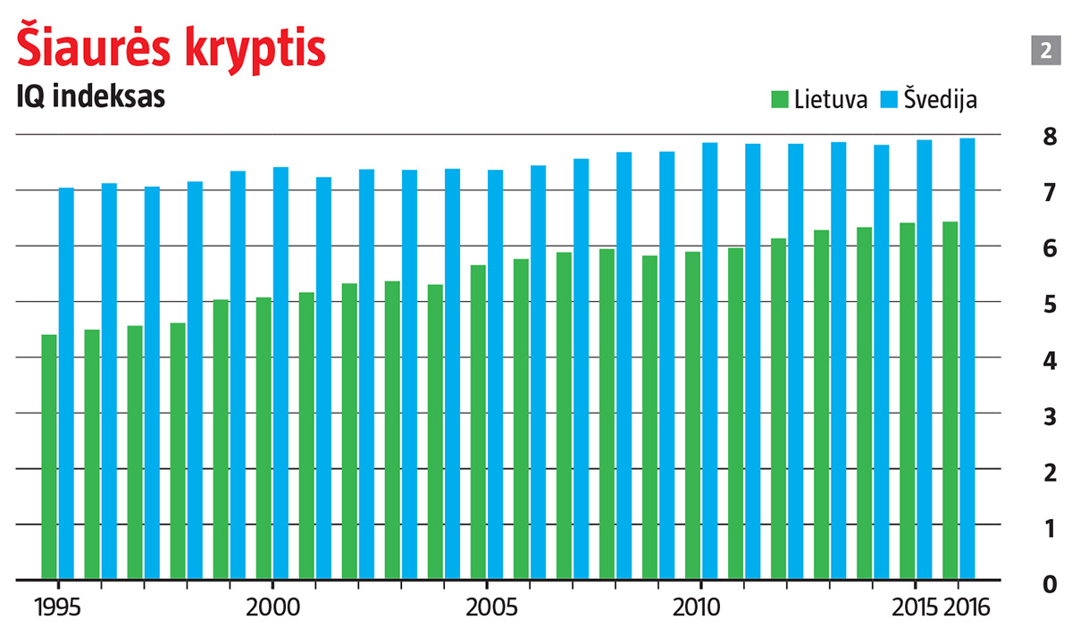 Šis IQ indeksas rodo, kokią pažangą Lietuva padarė per pastaruosius du dešimtmečius, palyginti su Švedija. Indeksas skaičiuojamas nuo 1995-ųjų (tais metais galima rasti nepriklausomybę atgavusios valstybės pirmuosius išsamius statistikos duomenis) iki naujausių rodiklių (2014–2016 m.). Apskaičiuojant šį indeksą ir Lietuvos, ir Švedijos rodikliai buvo lyginami su atitinkamoje srityje pirmaujančios valstybės rezultatu.