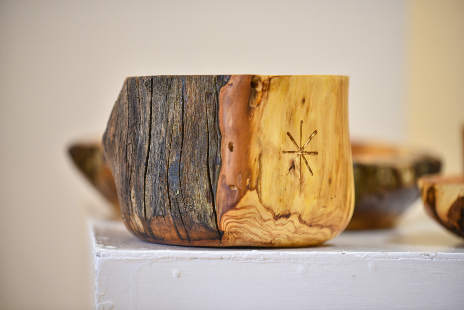 „Šitą sukūrėme su gluosniniu gręžiku. Tai tas medžių kenkėjas išvagojo pačią medieną, man beliko iš jos sukurti dubenėlį. Pavyko tikrai savitas“, – savo ir gamtos dueto rezultatu grožisi.
