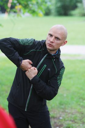 Pasiekiame neasfaltuotą parko takelį, kurį pro aukštas pušis apšviečia pluoštai skaidrios dienos šviesos. „Idealiausias variantas praktikuoti meditacinį bėgimą – tai neasfaltuotas takas kur nors parke ar miške, – iškart akcentuoja treneris. – Visų pirma, dėl geresnės sąnarių amortizacijos, be to, medžiai pridengia nuo saulės ar vėjo. Tai ir energiškai palankesnė vieta, nes jauti artimesnį kontaktą su žeme.“ Jis ima pasakoti apie laikyseną ir tuoj paneigia įprasto bėgimo taisykles judant šiek tiek palinkti į priekį ir sulenkti rankas per alkūnes. Kojas taip pat pataria vos pakelti nuo žemės atsispiriant, bent jau pradžioje. Man kelias minutes pajudėjus neįprastu būdu treneris klausia, kaip jaučiuosi. „Keistai“, – nuoširdžiai atsakau. „O kaip kojos? Ar joms sunku judėti?“ Netrukus jis pažeria daugiau klausimų, į kuriuos atsakydama turiu susitelkti vis į kitas kūno dalis: nugarą, rankas, galvą. Galiausiai pajuntu, kad kūnas, mintimis per jį perbėgus, ima vis labiau atsipalaiduoti. „Jei bėgdamas ramiai kvėpuoju ir po truputį atsipalaiduoju, galiu didinti tempą, – moko M. Čyvas. – O jei įtampa kyla – turiu jį mažinti, kol ši pranyks.