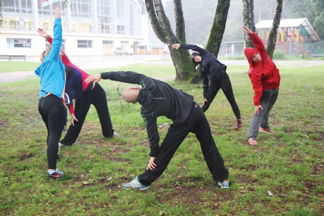 Po treniruotės atliekame jogos tempimo pratimus ir pasitiesę kilimėlį prisėdame ant žolės. Mindaugas vardija meditacinio bėgimo pranašumus: sumažėjusi inercija, padidėjęs sąmoningumas, stipresnė širdis, pagerėjusi medžiagų apytaka, harmonijos pojūtis. Ties kai kuriais punktais jau dabar galiu pritariamai linktelėti galvą, atrodo, lyg kūnas būtų ką tik gerai išmasažuotas: šiek tiek apsunkęs, bet tuo pačiu lengvas. Galvoje nebeteliūškuoja daugybė minčių.