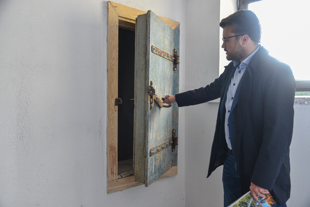 Tiltagalių pieninėje išliko netgi autentiškas šaldytuvas – speciali storomis durimis patalpa, kurioje laikyta produkcija.