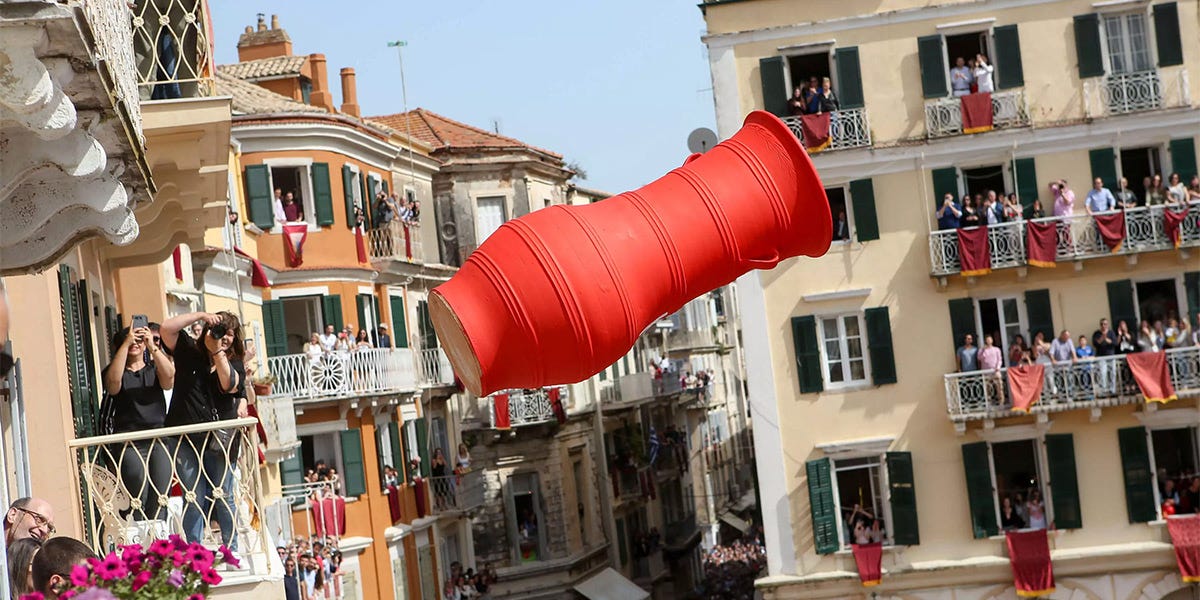 Graikijoje Velykų rytą bažnyčių varpams paskelbus apie Kristaus prisikėlimą, pasipila molinių indų kruša – žmonės iš balkonų mėto vandens ar vyno sklidinus ąsočius.