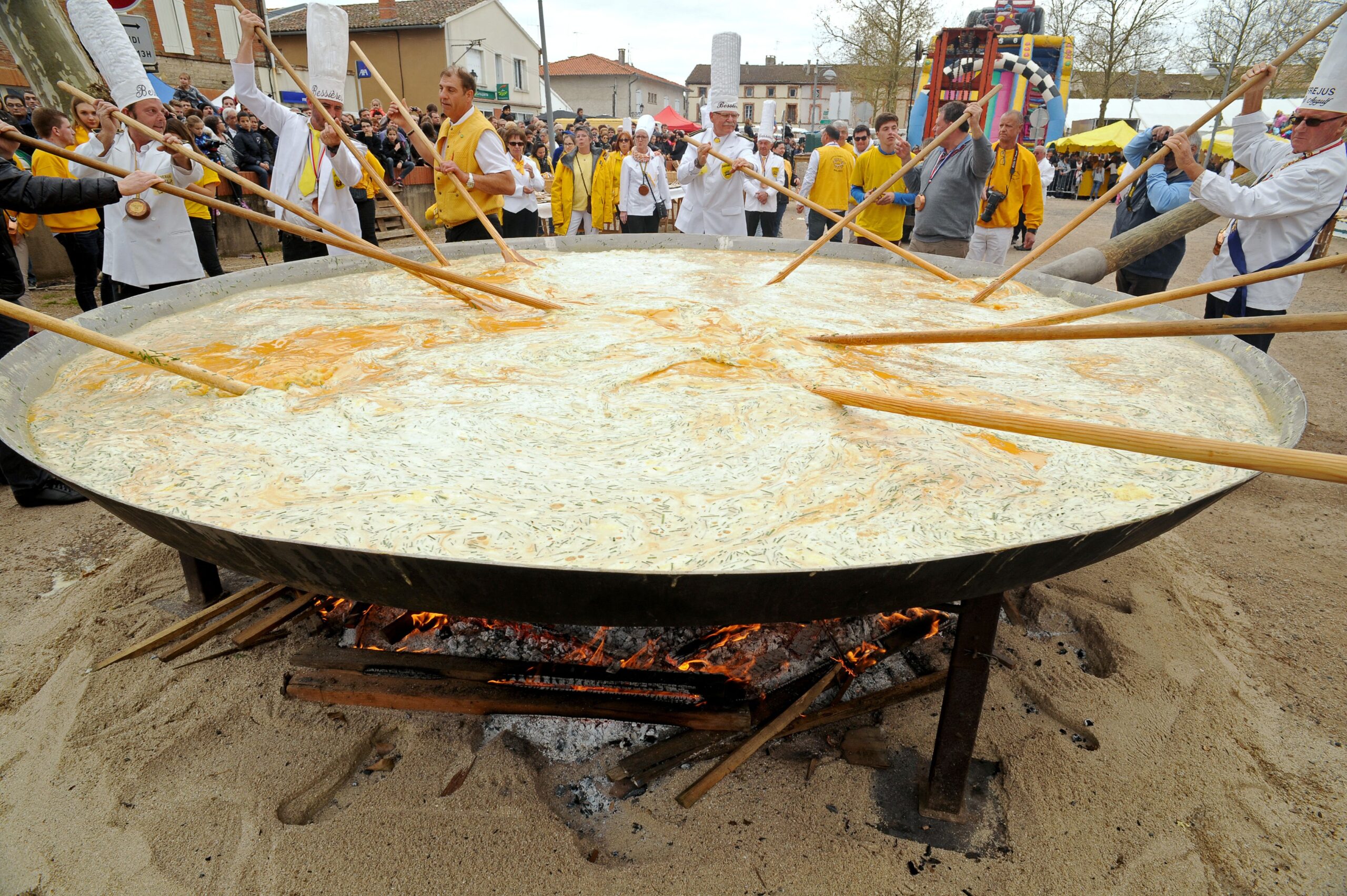 Kiekvienais metais Velykų pirmadienį pietvakarių Prancūzijos Besjero mieste apie 10 000 žmonių susirenka skanauti milžiniško omleto užkąsdami ilgais prancūziškais batonais.