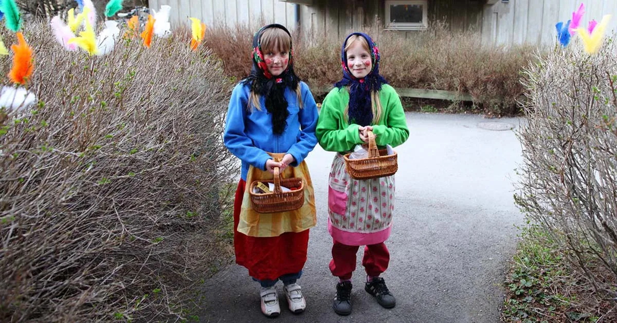 Švedijoje vaikai prieš Velykas persirengia raganomis, senėmis ir seniais.
