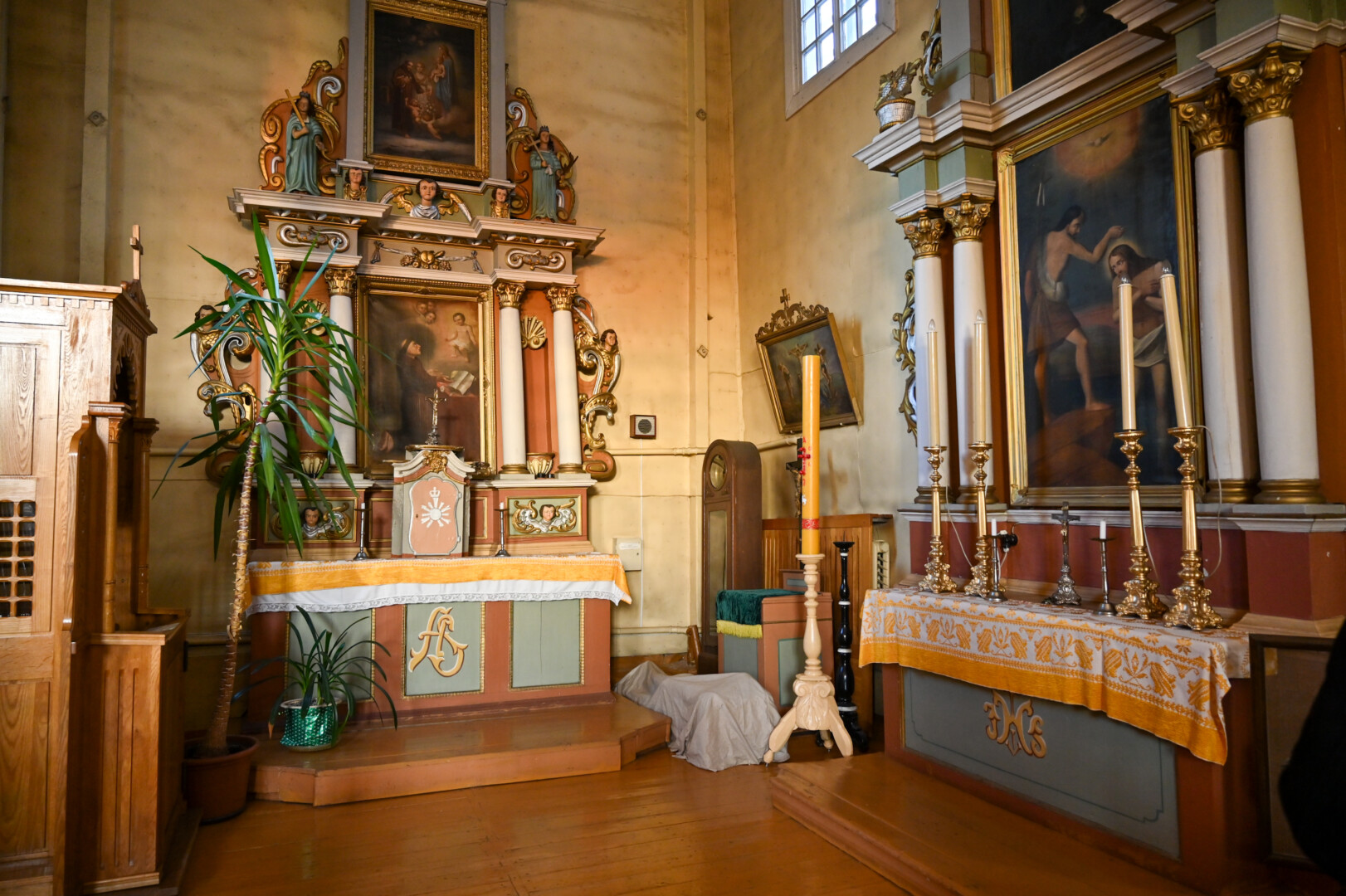 Didysis Viešpaties Jėzaus altorius, kurį puošia du paveikslai ir septynios medinės skulptūros, jau šaukiasi remonto. Kada paskutinį kartą jis remontuotas, dvasininkas net nerado informacijos.