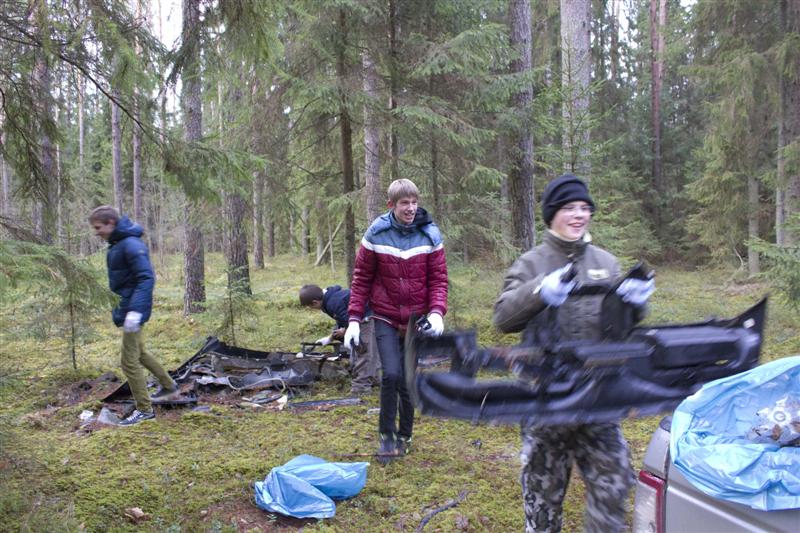 Radome daug šiukšlių, automobilių dalių, dvi netvarkingas stovyklavietes. Mūsų radiniai parodo kai kurių žmonių sąmoningumą. Pririnkę po 4–5 maišus šiukšlių pavargome. Tuomet grįžome į stovyklavietę, užsikūrėme laužą, pasidarėme iešmus, kepėme dešreles ir zefyrus. Dar trumpai pažaidėm žaidimą: turėjome visi pauostyti medžio šaką ir pasakyti, koks tai medis. Ne visiems sekėsi įminti, bet užtat sužinojome, kaip iš kvapo galima atskirti kai kurias medžių rūšis.