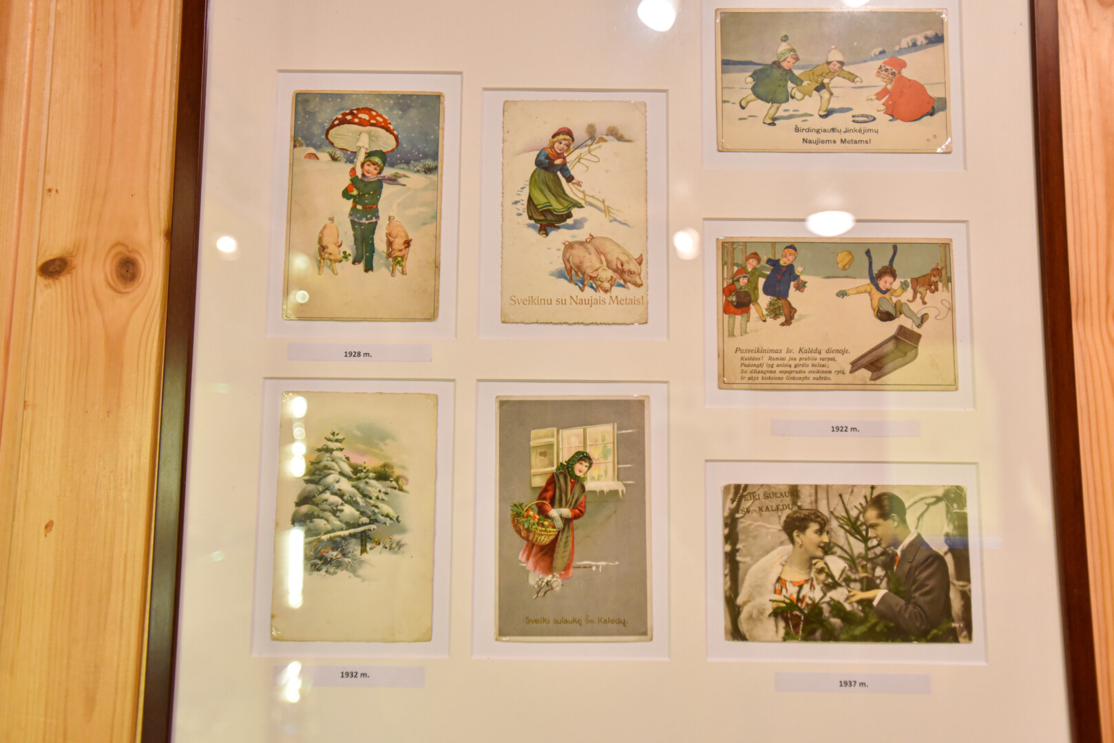 Po truputį pildosi ir kalėdinių bei naujametinių atvirukų, gamintų dar prieškariu, kolekcija. Atvirukai su lietuviškais rašmenimis pagal užsakymą buvo gaminami Vokietijoje, Italijoje, Čekijoje, Prancūzijoje. Visi jie dekoruoti sėkmės simboliais: dobilėliais keturlapiais, paršeliais, musmirėmis, pasagomis.
