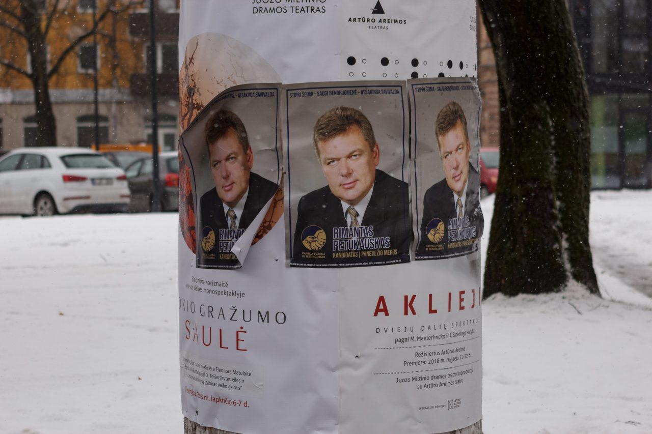 Laisvės gynėjų dieną panevėžiečius apstulbino ant Juozo Miltinio dramos teatro reklaminio stendo miesto centre užlipdytas kandidato plakatas. Iš vienos stendo pusės politinė reklama uždengė pagal panevėžietės tremtinės Dainoros Urbonienės knygą „Sibiras vaiko akimis“ pastatyto spektaklio „Kokio gražumo saulė“ afišą. Kitoje vietoje po R. Petukausko nuotrauka teliko kito spektaklio pavadinimas „Aklieji“.