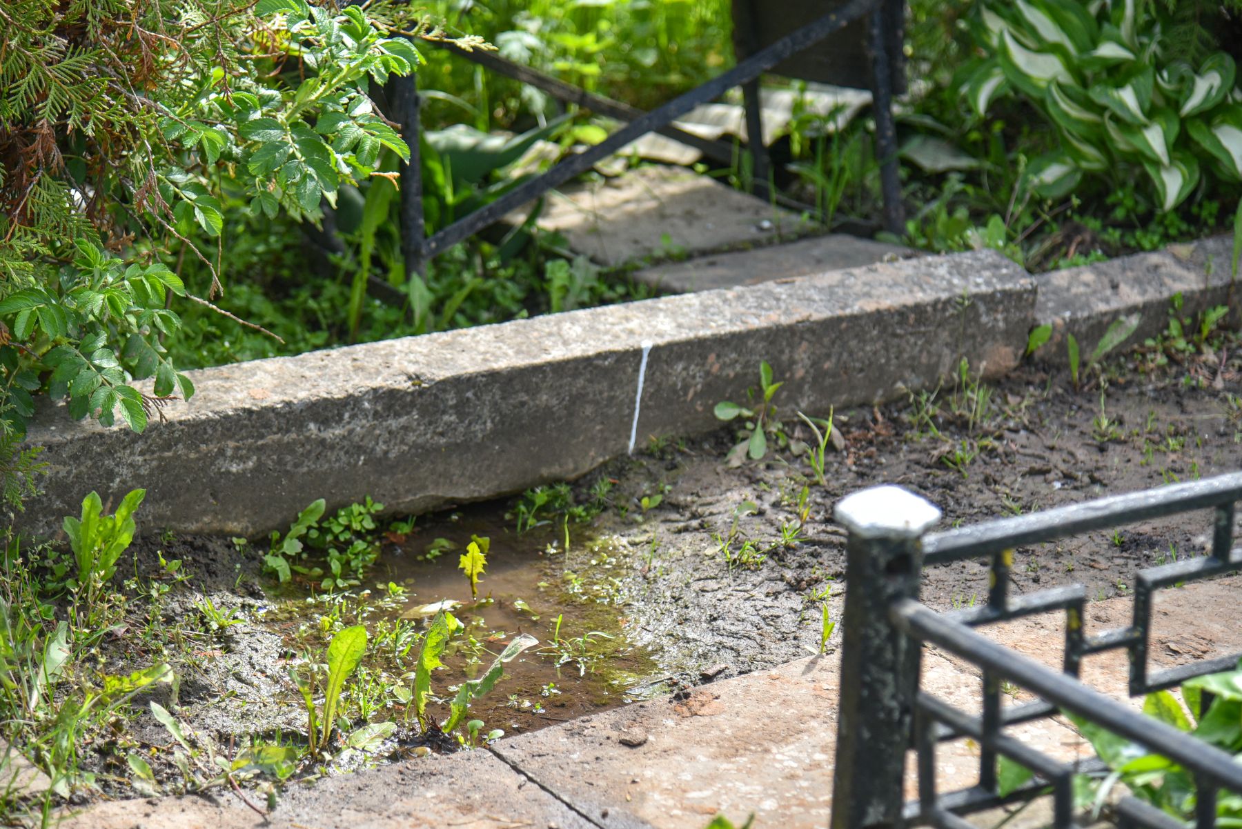 D. Vadlugos nuomone, kapinių kampe vanduo kaupiasi labai įtartinai – tarsi žemės paviršiuje.