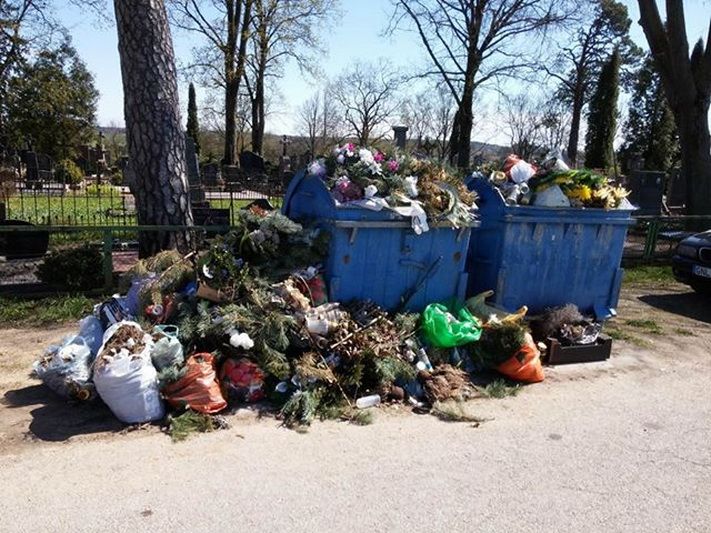 Pasodintų gėlių jie negalėjo palaistyti, nes vanduo į kapines vis dar nėra tiekiamas. Akis bado ir prie kapinių tvoros suversti šiukšlių kalnai, kas dieną augantys greta perpildytų atliekų konteinerių.