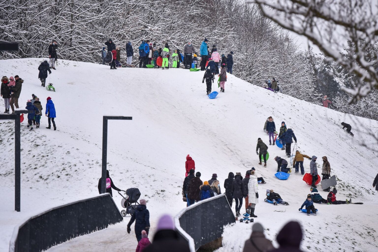 Panevėžyje Kultūros ir poilsio parke supiltas kalnas savaitgalį iki pačių išnaktų priminė skruzdėlyną, o į patį parką žmonių susirinko ne mažiau nei į gerai suorganizuotą žiemos šventę.