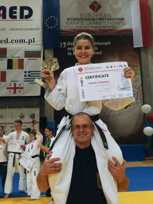 Juozo Balčikonio gimnazijos moksleivė Radvilė Talačkaitė pavasario atostogas pradėjo ypač pakilia nuotaika: iš Danijoje vykusių Europos kiokušin karatė jaunių pirmenybių grįžo su iškovotu čempionės titulu.