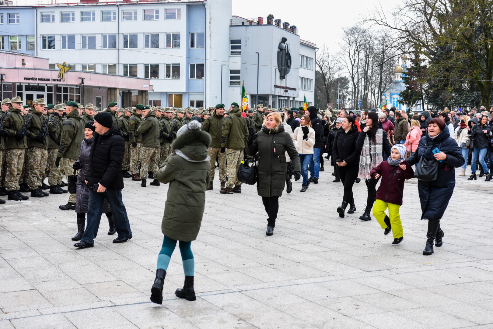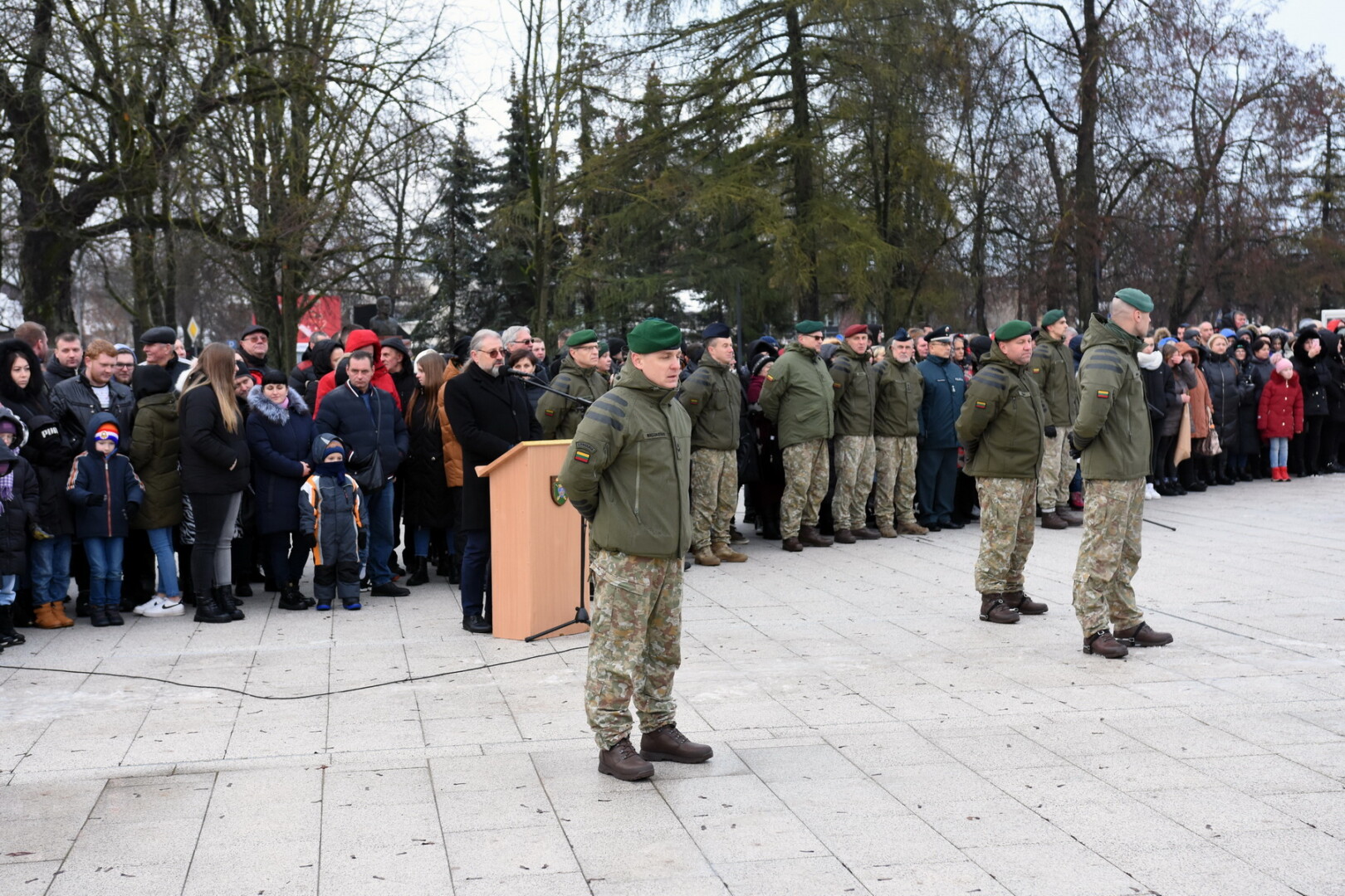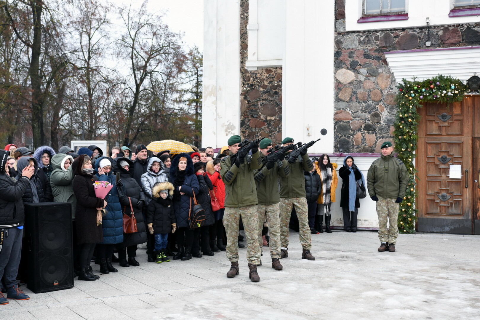 Kūčių išvakarėse Panevėžio Nepriklausomybės aikštėje iškilmingai priesaiką davė Pajuostyje dislokuoto Karaliaus Mindaugo husarų bataliono nuolatinės privalomosios pradinės karo tarnybos kariai.