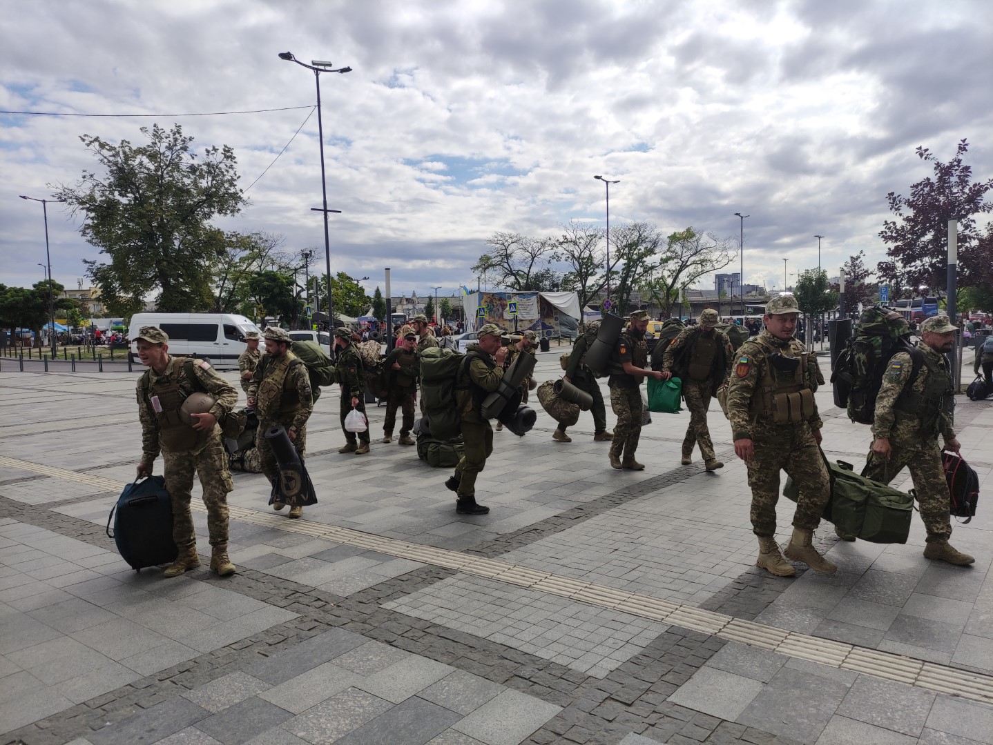 Kariai Lvivo stotyje išvyksta į frontą. E. Butrimo nuotr.