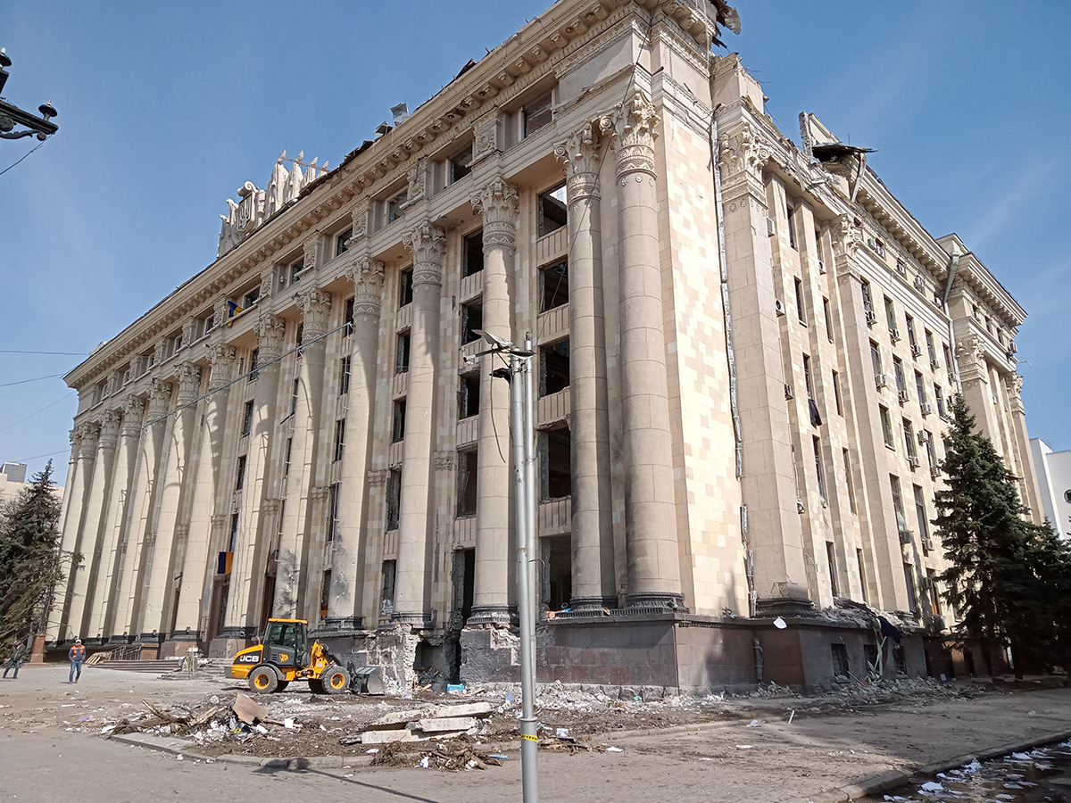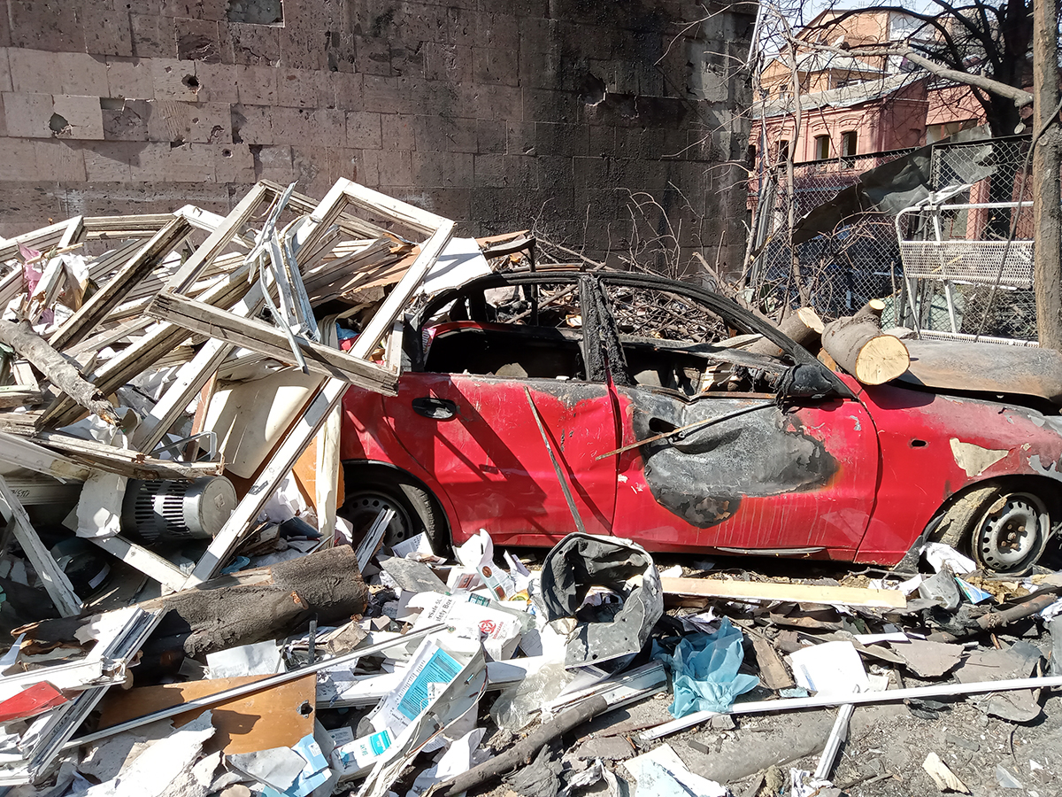 Tokia karo realybė šiame Ukrainos mieste. Kaip pranešė Charkovo meras, mieste sugriauta 75 proc. ligoninių, 33 proc. mokyklų, 23 proc. vaikų darželių ir 14 proc. gyvenamųjų namų, o kasdien į miestą atskrenda vidutiniškai 50–80 bombų.