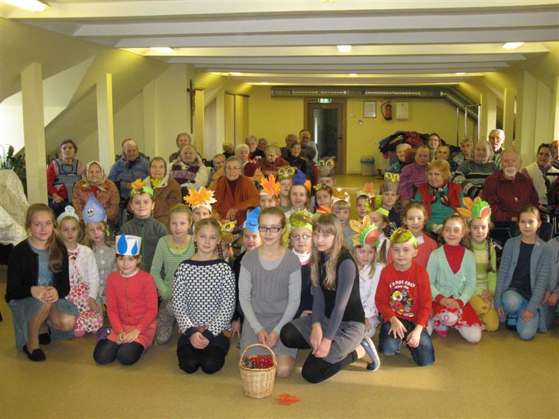 Mūsų mokyklos mokiniai kelis kartus per metus aplanko Šv. Juozapo globos namų bendruomenę. Šiais metais tai padarėme rudenį. Norėjosi praskaidrinti laiką, kai šventės dar toli, o pilka kasdienybė prašyte prašo kažko įdomaus ir gero. Pradinių klasių mokiniai bei penktokai kartu su savo mokytojomis ir muzikos mokytoja V. Glebavičiene, kaip visada, sušildė globos namų gyventojus savo dainomis ir eilėraščiais.
