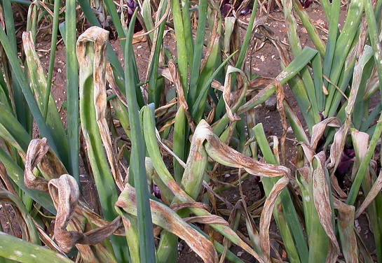 Pavyzdžiui, Botrytis squamosa svogūnų ir česnakų laiškams sukelia žaibišką lapų dėmėtligę.