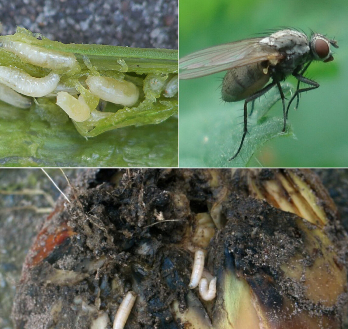 Dvisparnių vabzdžių atstovės – vienos pavojingiausių svogūnų ir česnakų kenkėjų. Nors pačios muselės – mažytės, pilkai rudu kūneliu ir permatomais sparneliais – augalams nepavojingos, jų lervos yra tikras svogūnų augintojų siaubas.
