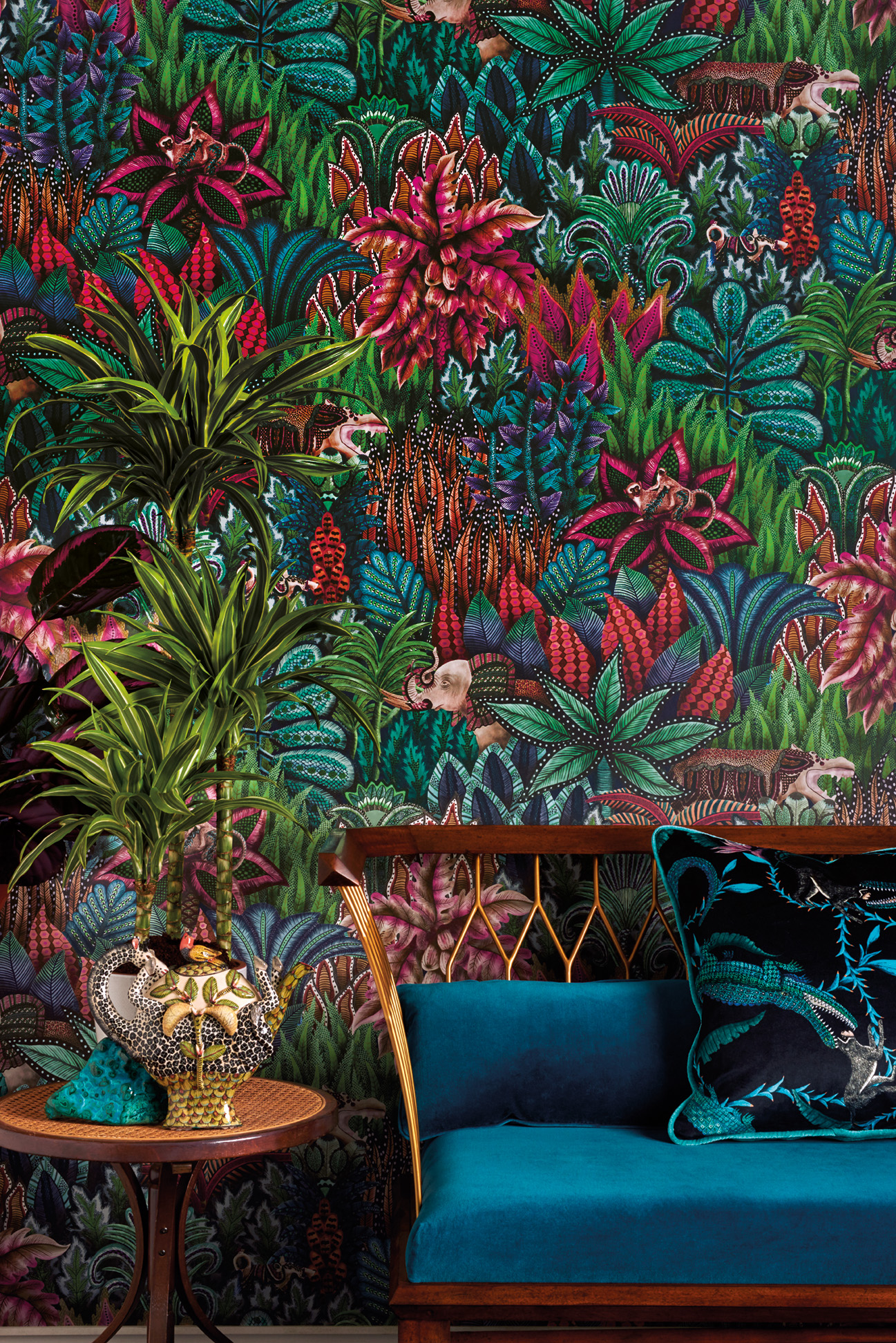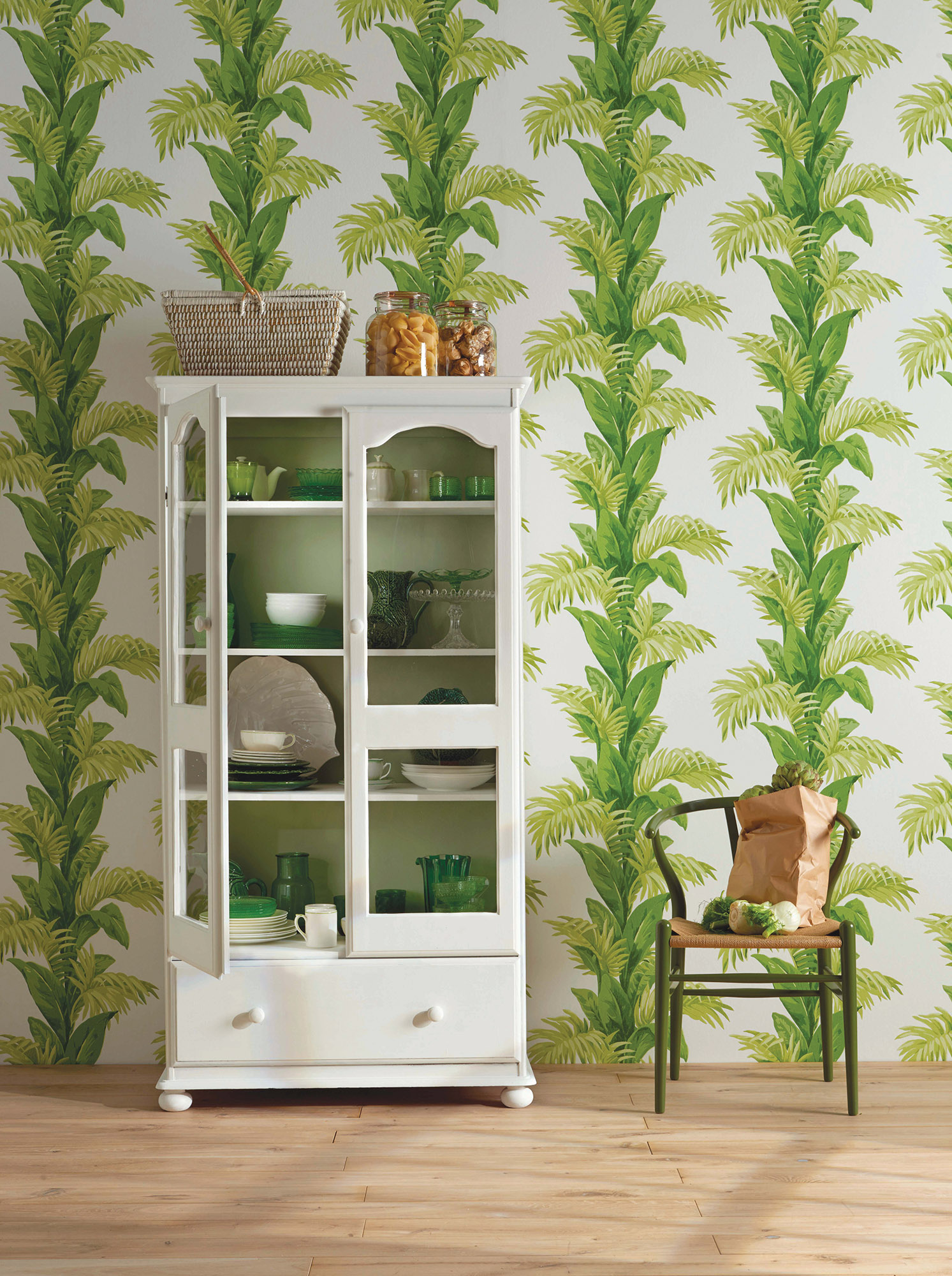 Žalia, tapusi viena madingiausių sezono spalvų, drąsiai įžengė ir į interjerus. Tapetai, audiniai, keraminės plytelės dekoruojamos egzotinių palmių lapais, stilizuotais rojaus sodų augalų ir paukščių motyvais. Ši mada turi ir akivaizdžią naudą – gaivi žalia spalva ramina pavargusias akis ir kuria poilsio oazę mūsų būstuose.