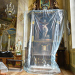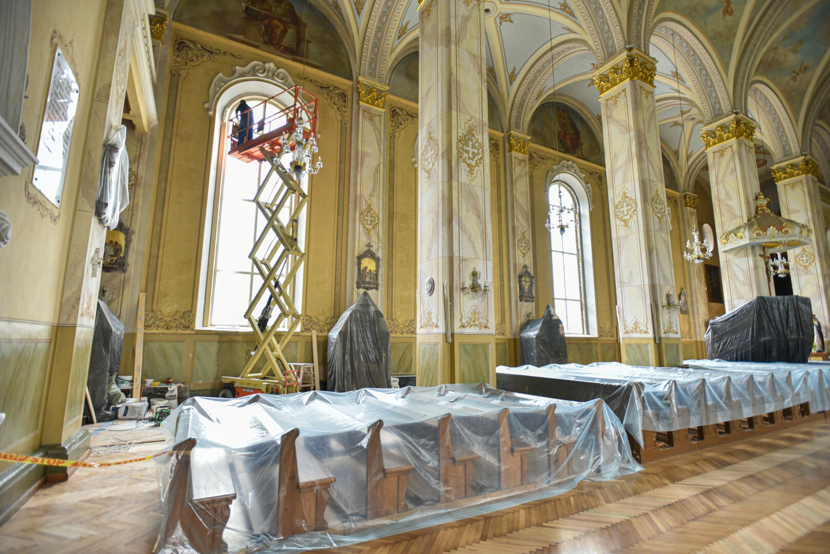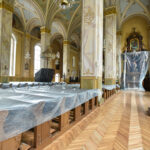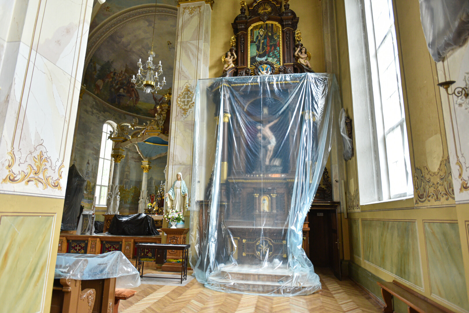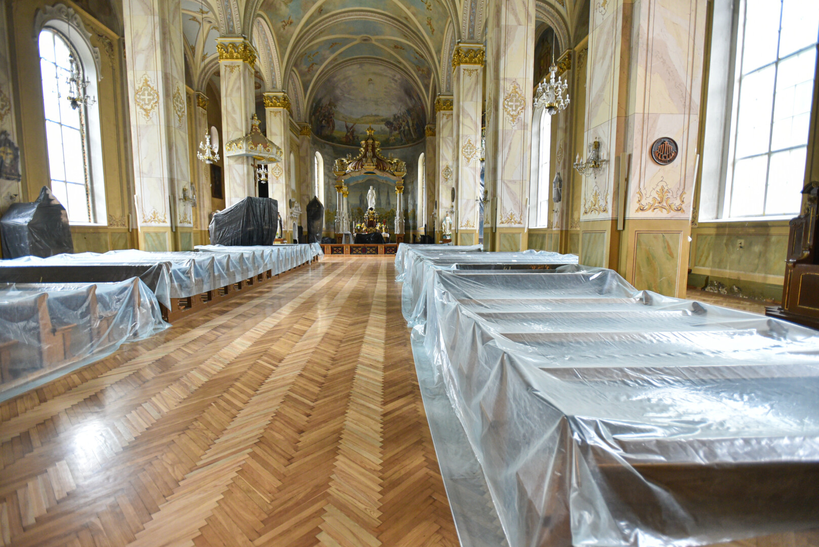 Pagrindinė Panevėžio šventovė – Kristaus Karaliaus katedra – jau kurį laiką parapijiečius pasitinka polietilenu uždangstytais klauptais, klausyklomis, paveikslais, altoriumi.