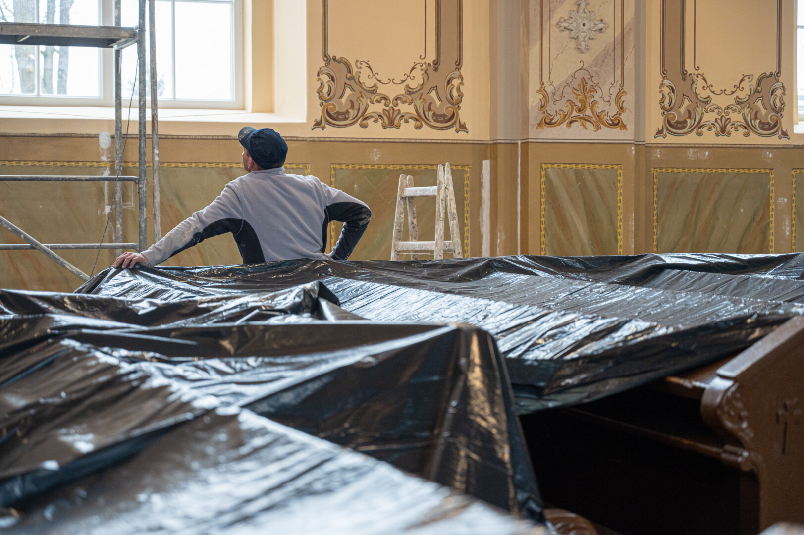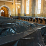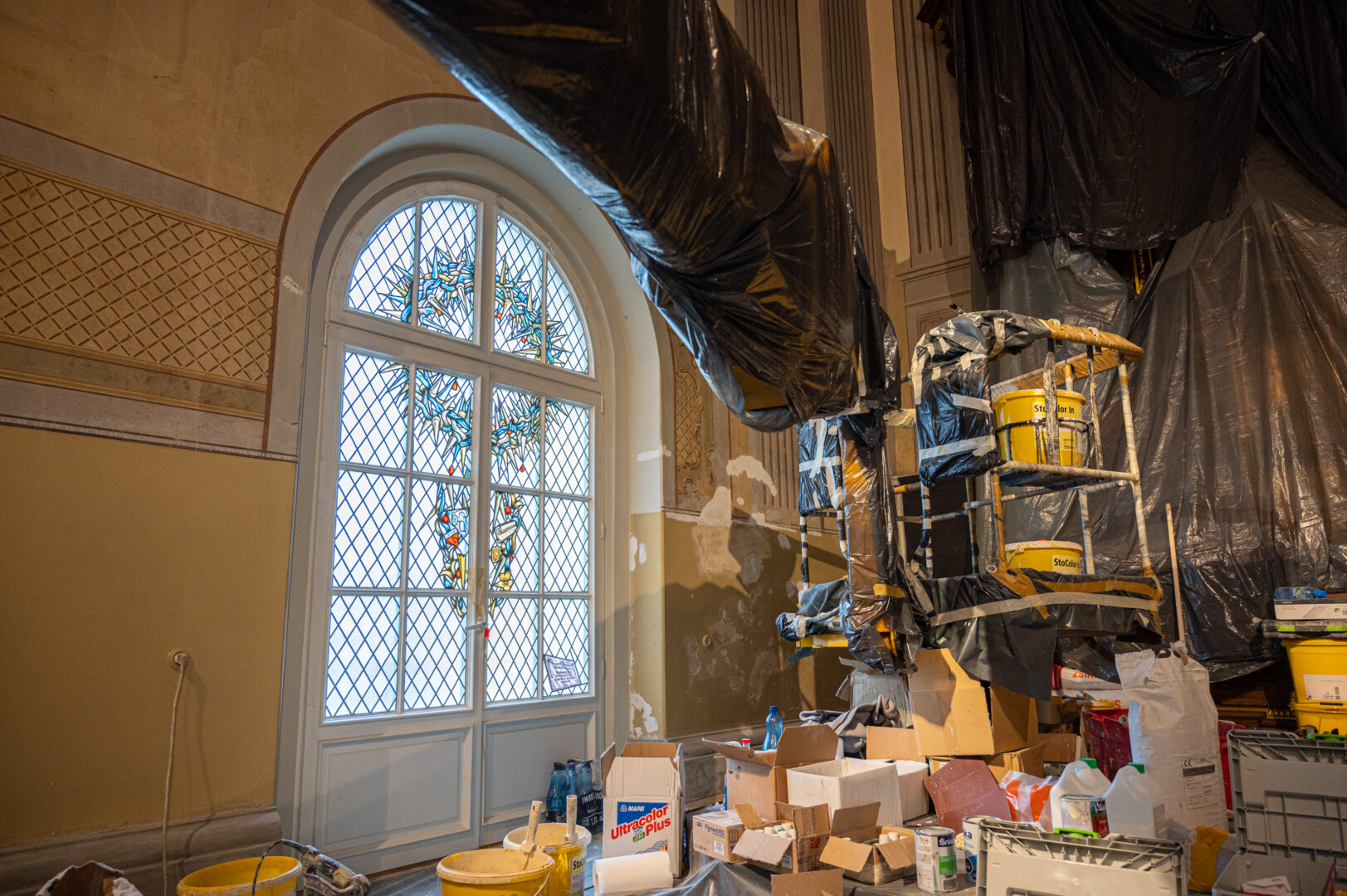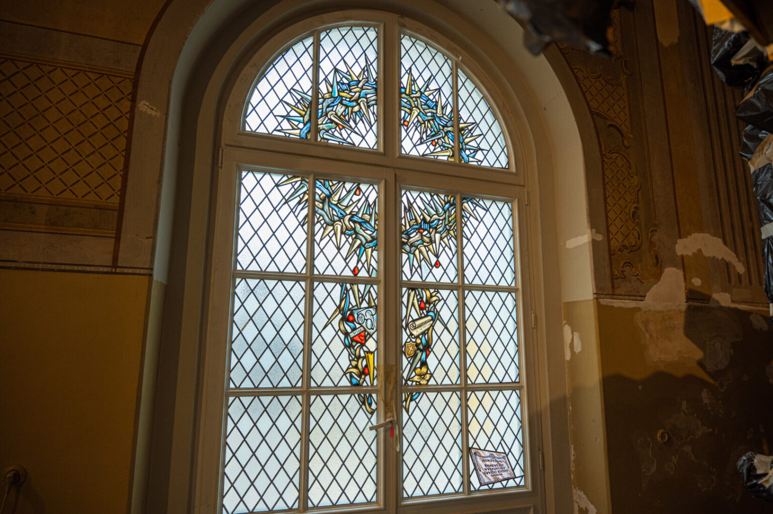 O kol kas naujasis vitražas dar uždengtas nuo tikinčiųjų akių, mat katedroje darbuojasi meistrai iš Lenkijos – nuo sienų valomos apnašos, atsiradusios per daugybę metų nuo paskutinio bažnyčios remonto.