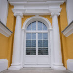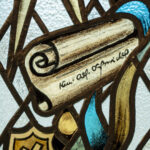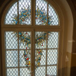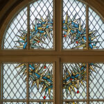 Anot jo, geltonai nudažyti parapijos namai prisidėjo prie vitražo grožio, mat juos atspindėdamas šis atrodo tarsi žėrintis auksu.
