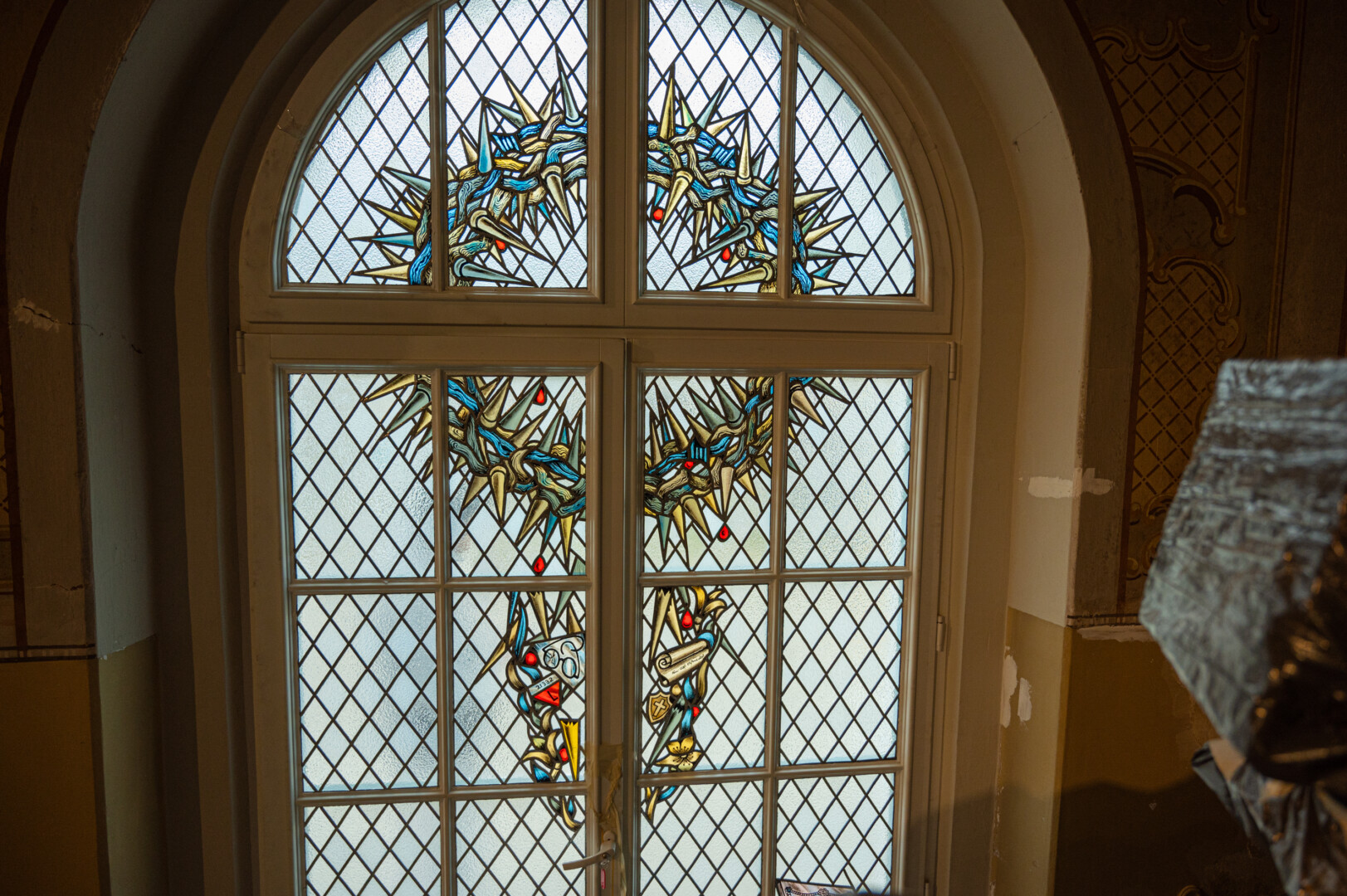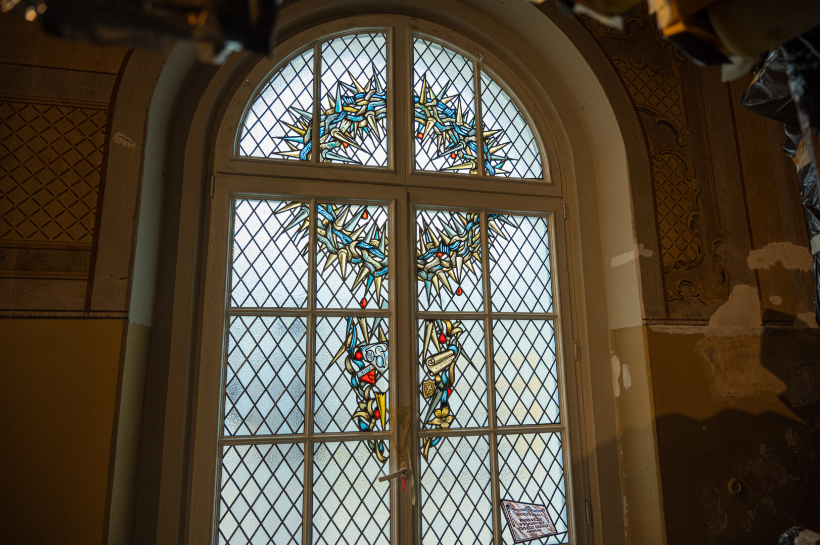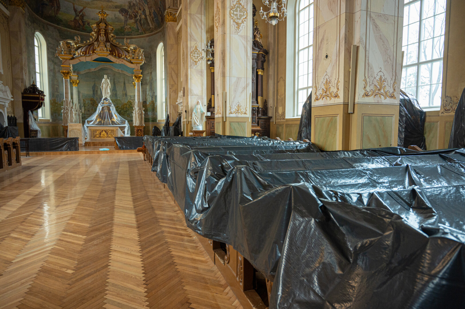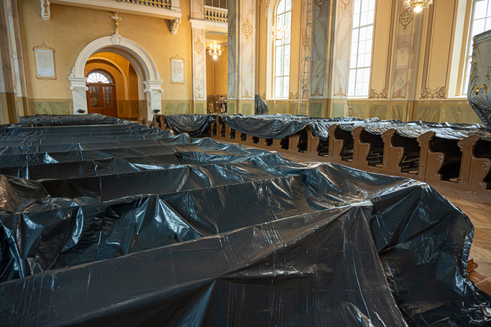O kol kas naujasis vitražas dar uždengtas nuo tikinčiųjų akių, mat katedroje darbuojasi meistrai iš Lenkijos – nuo sienų valomos apnašos, atsiradusios per daugybę metų nuo paskutinio bažnyčios remonto.