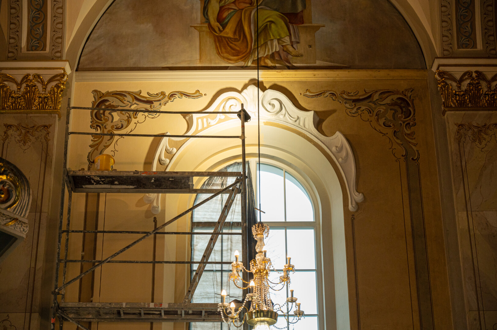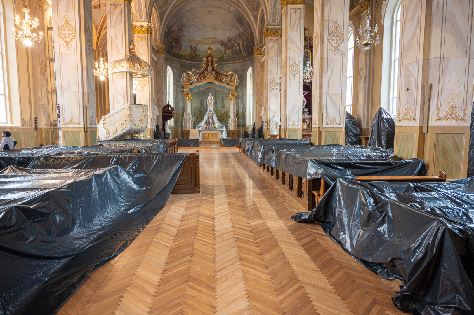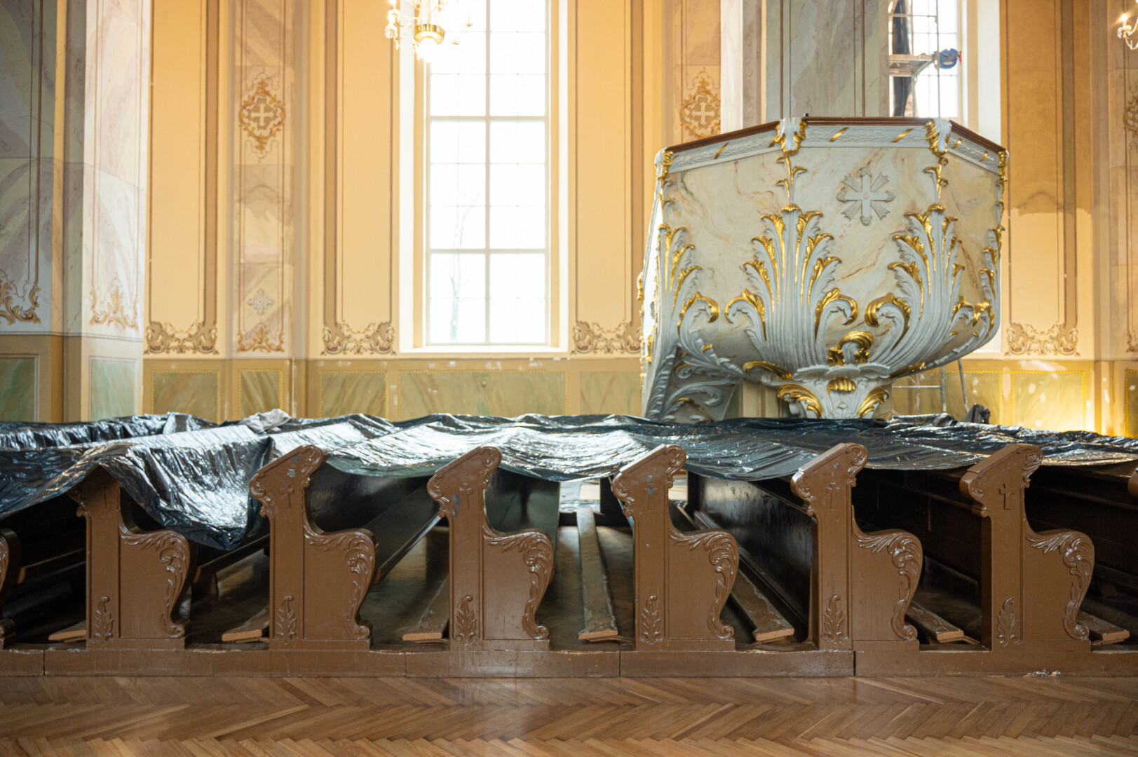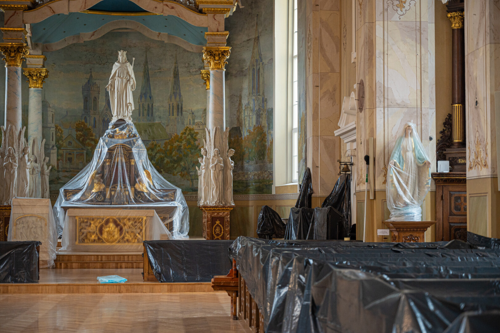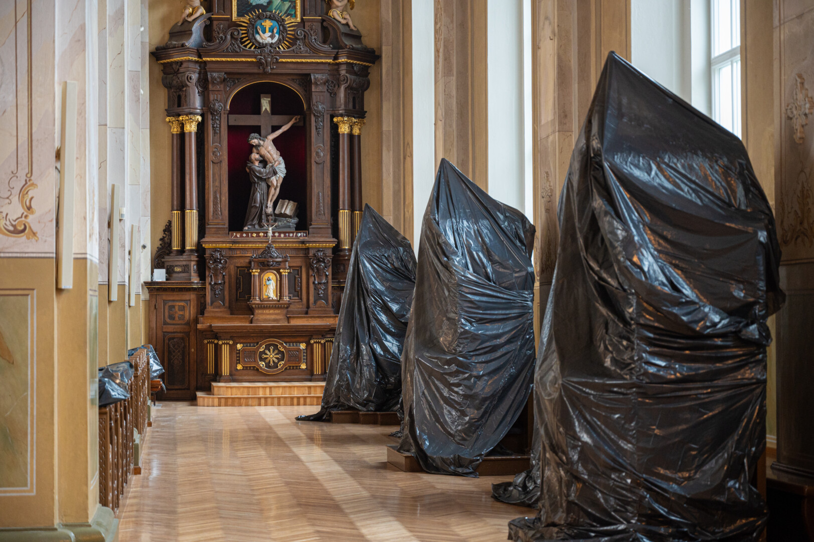 O kol kas naujasis vitražas dar uždengtas nuo tikinčiųjų akių, mat katedroje darbuojasi meistrai iš Lenkijos – nuo sienų valomos apnašos, atsiradusios per daugybę metų nuo paskutinio bažnyčios remonto.