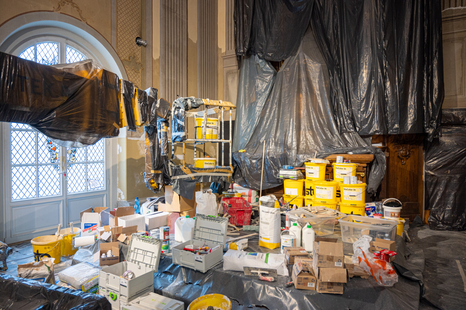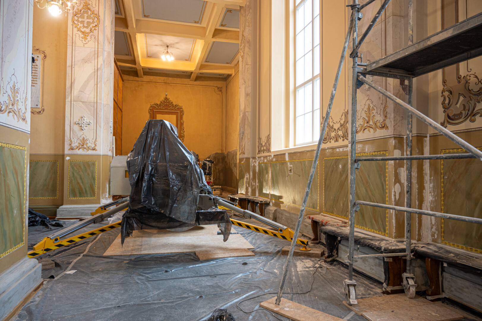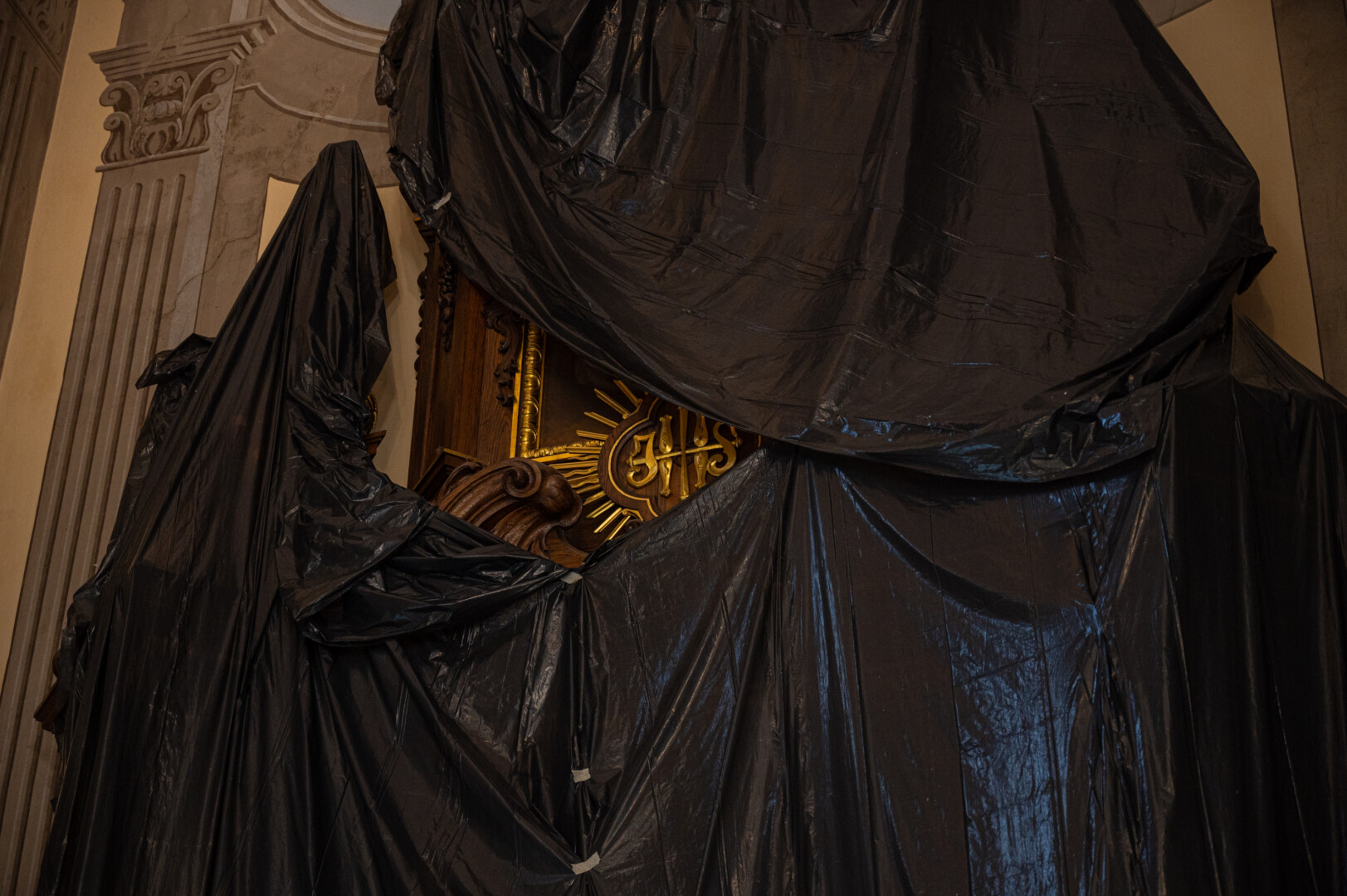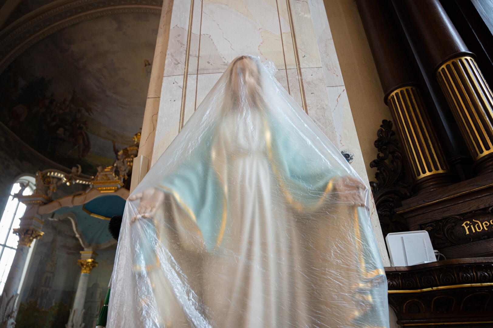 O kol kas naujasis vitražas dar uždengtas nuo tikinčiųjų akių, mat katedroje darbuojasi meistrai iš Lenkijos – nuo sienų valomos apnašos, atsiradusios per daugybę metų nuo paskutinio bažnyčios remonto.
