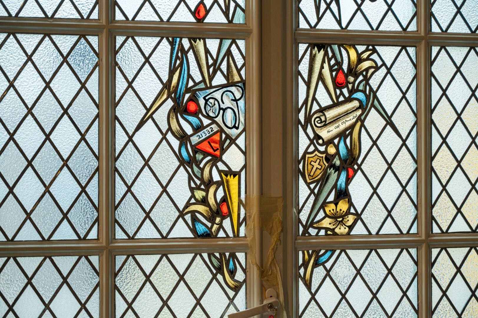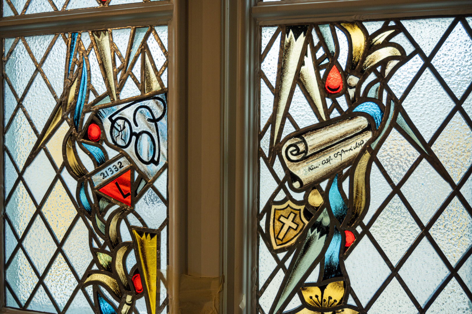 Vitražas puošia vietą, kurioje planuojama ateityje įrengti kriptą ir iš šventoriaus perkelti kunigo A. Lipniūno palaikus.
