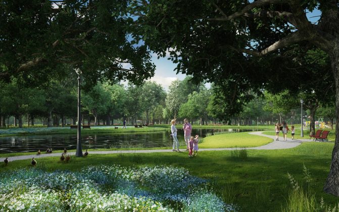 Ąžuolyno tvarkybos projekto vizualizacija.