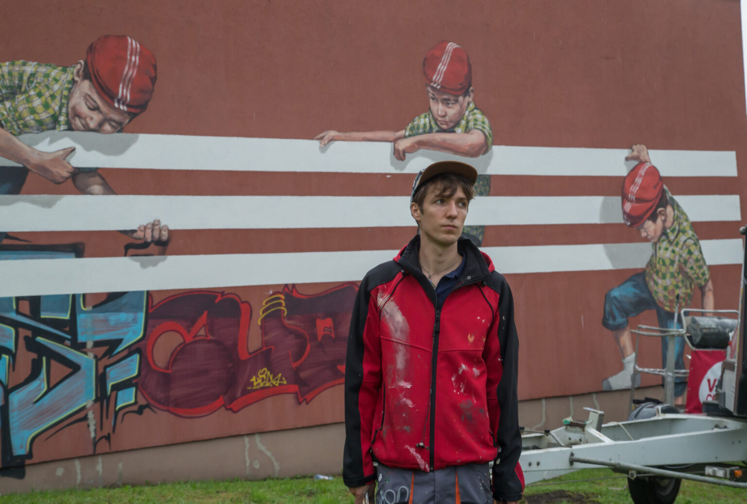 Ernestas Kaune turėjo taikytis prie permainingų orų, todėl negalėjo pradėti dirbti lauke pagal numatytą grafiką. Kai pirmą dieną pradėjo dažyti, prasidėjęs lietus dažus nuplovė, todėl kitą dieną teko valyti sieną ir viską pradėti iš naujo.