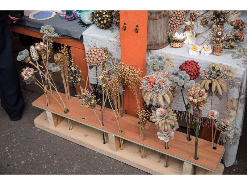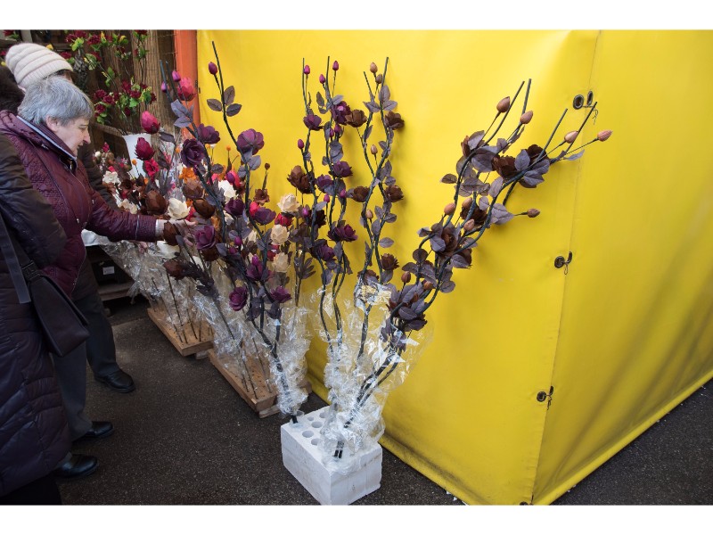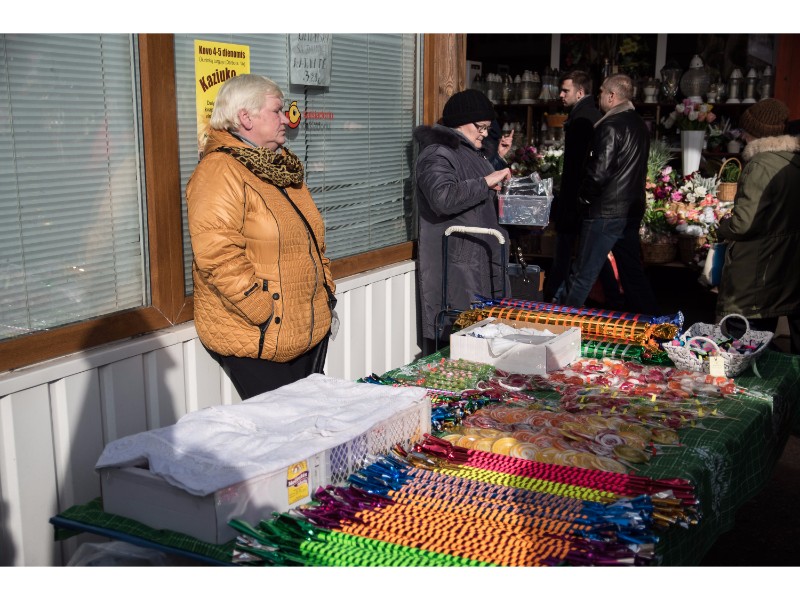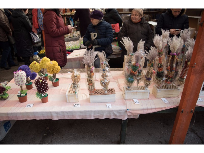 Moteris taip pat siūlė įdomiai sukomponuotus medelius iš džiovintų sodo augalų ir megztas pirštines. Nors už pastarąsias pardavėja prašė vos 1,5 euro, pirkėjų sulaukė labai mažai. Ši prekyba, anot jos, baigėsi dar žiemą.