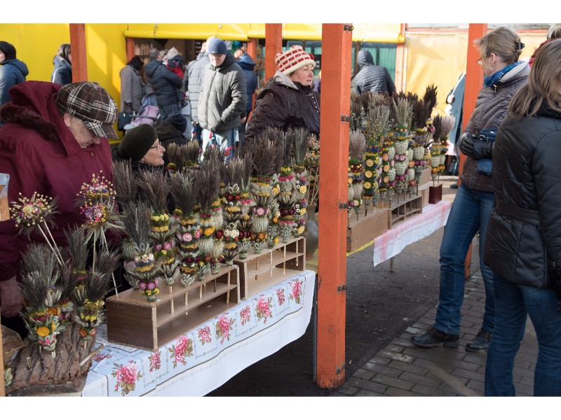 Kai kurie pirkėjai namus panoro pasipuošti ir spalvotomis verbomis – jų prekyba kaip tik prasideda nuo Šv. Kazimiero dienos. Ne pirmus metus pavasario mugėse šias grožybes pardavinėjanti Birutė džiaugėsi, kad pirkėjų jai šiandien nestinga. Už vieną verbą moteris prašė nuo 3 iki 5 eurų.