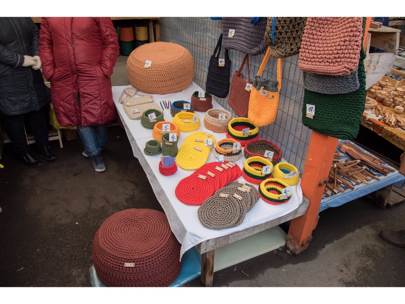 Pirkėjų dėmesiu nesiskundė ir renginių organizatorius Mindaugas Baltrūnas iš Panevėžio. Jis su kolege siūlė iš medžio drožtus virtuvės įrankius, suvenyrus iš šiaudų bei įvairius masinės prekybos žaisliukus.