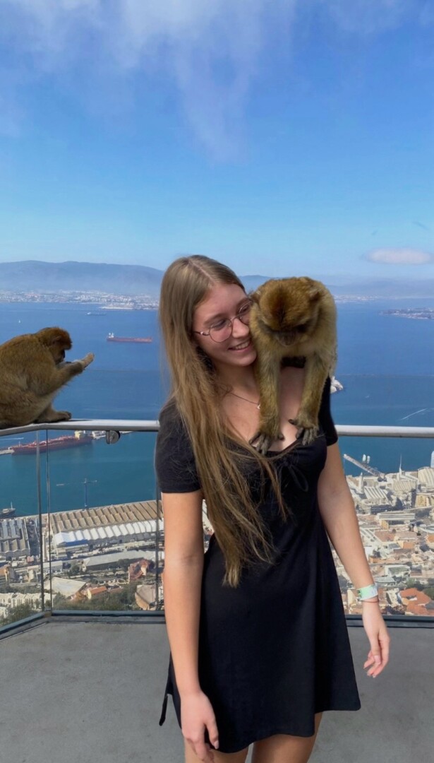 „Pakilus į 400 metrų aukštį, galėjau apžvelgti visas Gibraltaro žemes. O ten mane pasitiko beždžionėlės, kurios laipiojo ant nugaros ir vis bandė ką nors nugvelbti. Šie prisiminimai iki šiol kelia šypseną“, – juokiasi Vakarė Viktorija.