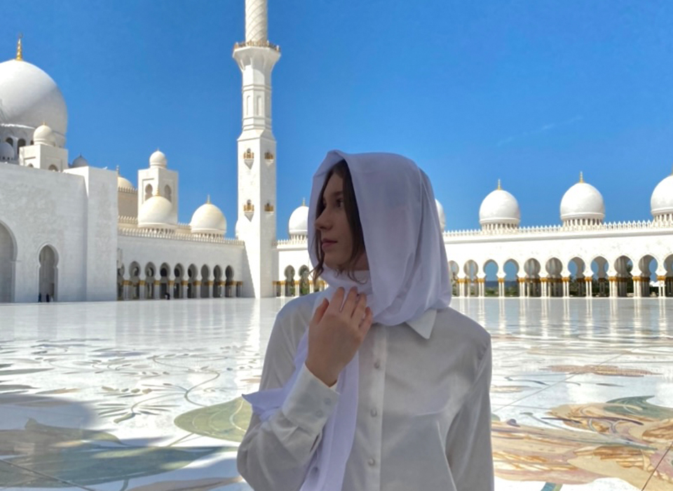 „Apsilankiau Abu Dabyje esančioje išskirtinėje šeicho Zaido mečetėje, kurios dydis yra lyg penki futbolo stadionai. Ten stovėdama jaučiau didelę pagarbą šį stebuklą sukūrusiems žmonėms“, – pasakoja Vakarė Viktorija.