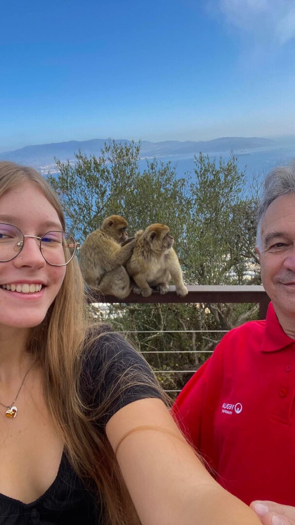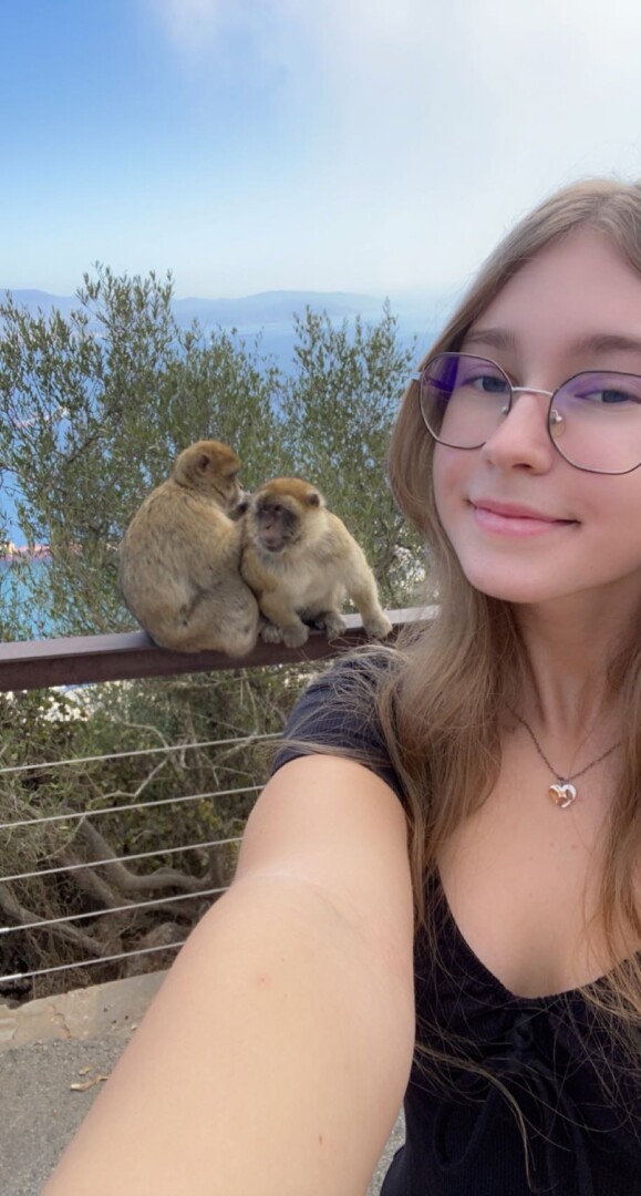 „Pakilus į 400 metrų aukštį, galėjau apžvelgti visas Gibraltaro žemes. O ten mane pasitiko beždžionėlės, kurios laipiojo ant nugaros ir vis bandė ką nors nugvelbti. Šie prisiminimai iki šiol kelia šypseną“, – juokiasi Vakarė Viktorija.