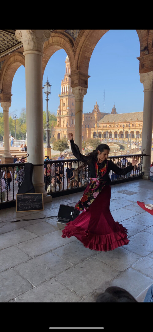 O už 4000 kilometrų nuo Lietuvos, Sevilijoje, žiūrėdamas flamenko šokius, Vakarės Viktorijos tėtis netikėtai sutiko seną pažįstamą – Panevėžio Juozo Balčikonio gimnazijos direktorių Raimondą Dambrauską.