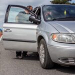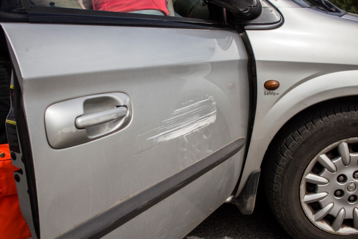 Moteris  pastebėjo, kad po įvykio truputį apgadintos ir automobilio durelės.